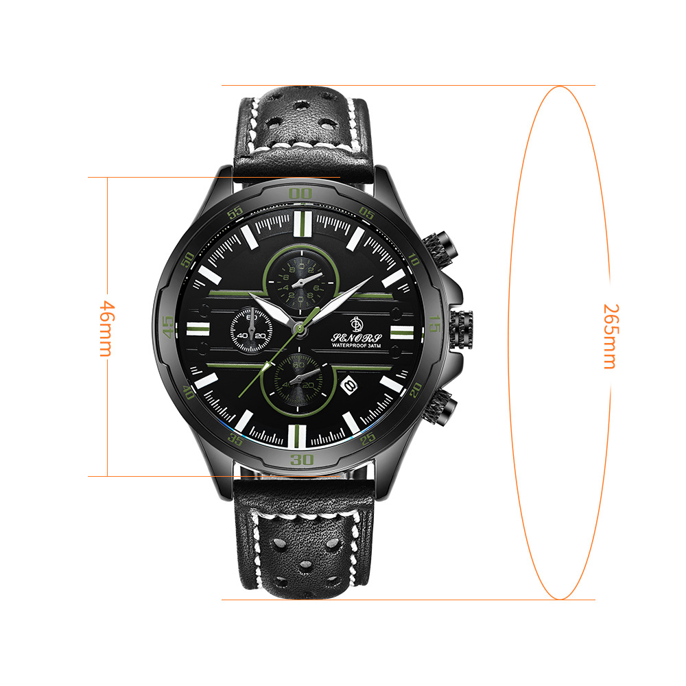 Surface: double-layer literal, oil filling at all times, LOGO printing, luminous needle