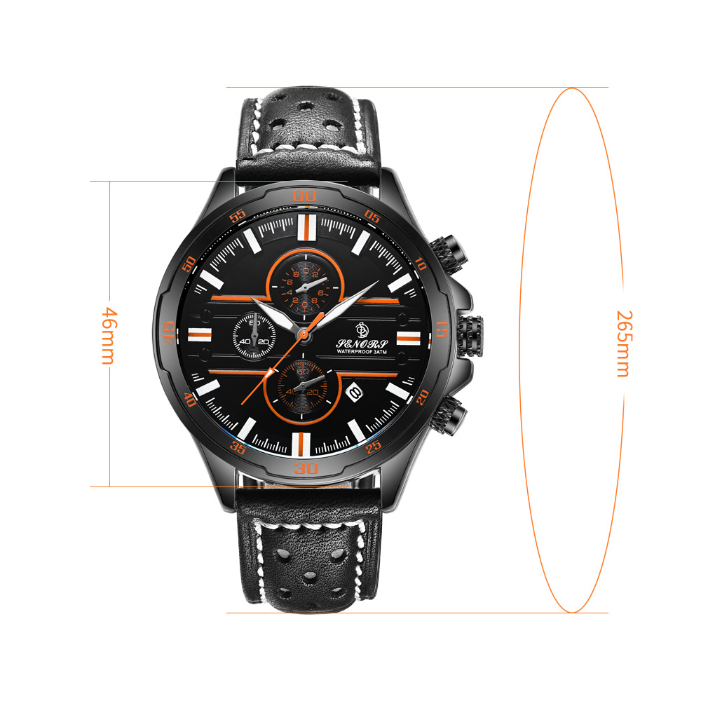 Strap: double-layer leather strap with car line, with stainless steel square buckle and laser LOGO