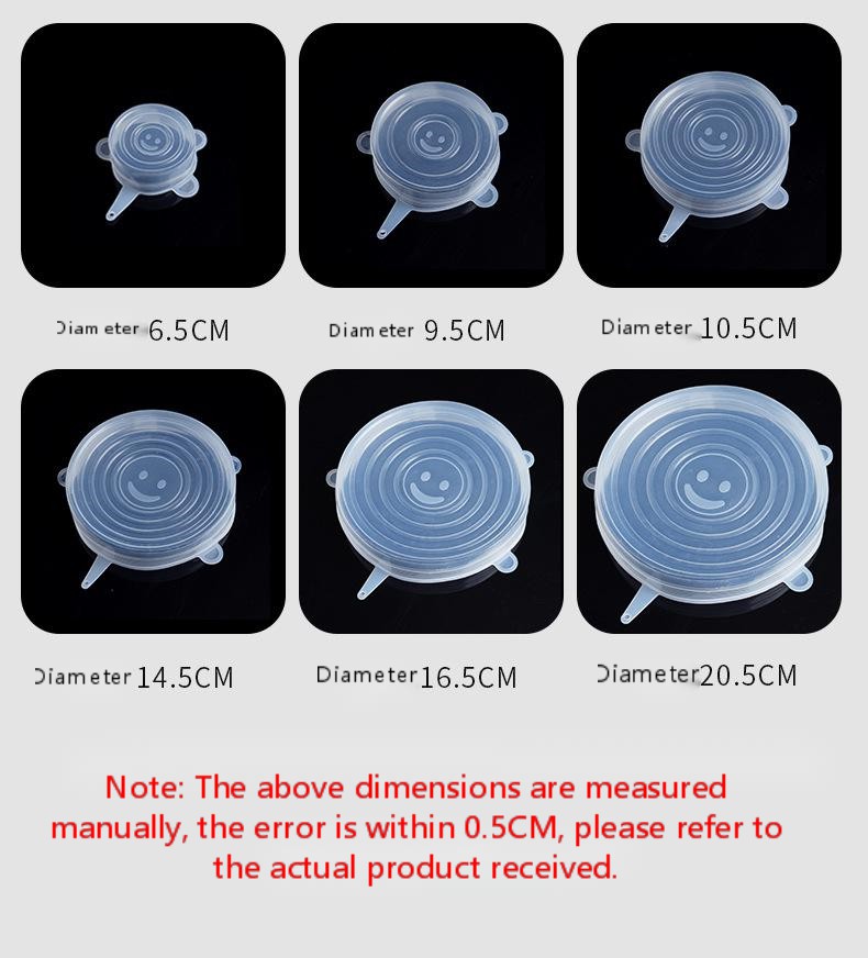 1.6Pcs/Set kitchen silicone cover. Can be stretched to fit a variety of different sizes.