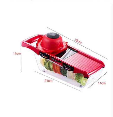 Composition:: 6 blades + 1 vegetable cutter body +- -pc container + 1 hand guard