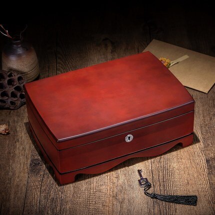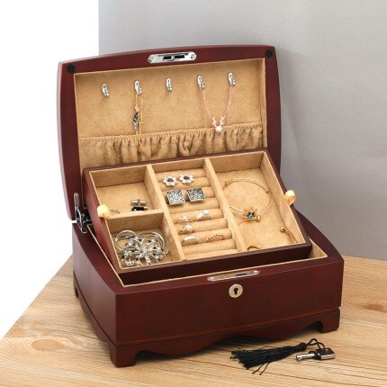 Multifunctional Wooden Jewelry Box With Multi-Layer Retro Style