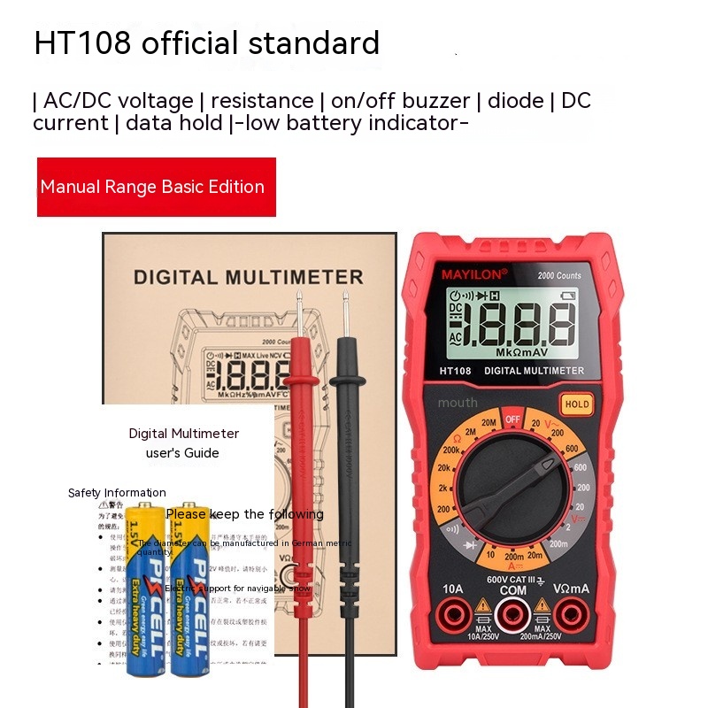 DC voltage range: 200mV/2V/20V/200V/600V