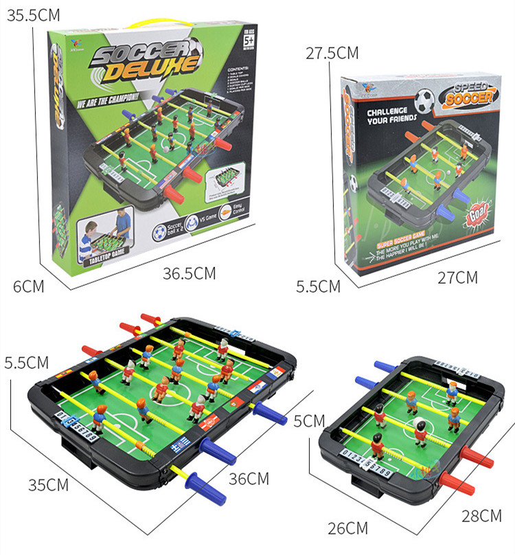 Product information:Material: ABSSize: 6 poles 36x35x5.5cm, 4 poles 26x28x5cmPacking list:Table football x1