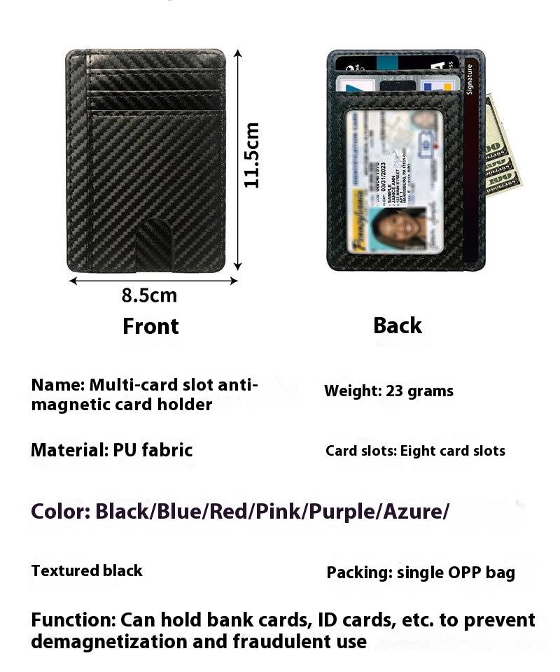 Multiple Card Slots Portable Pu Leather Credit Card Bag Card Holder