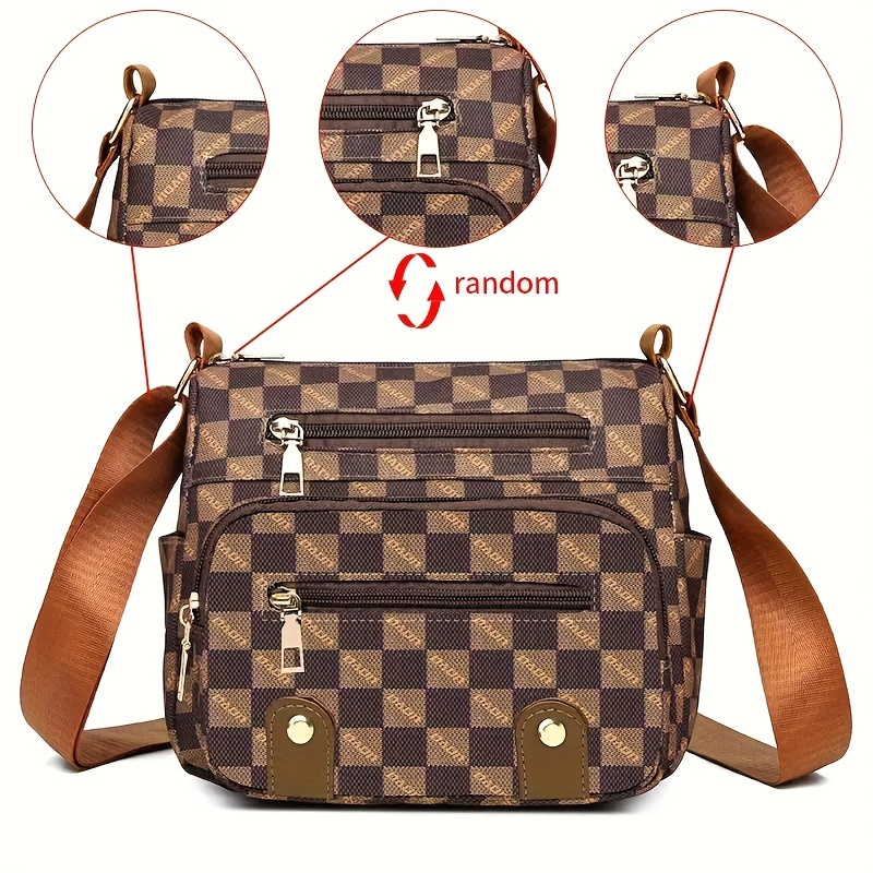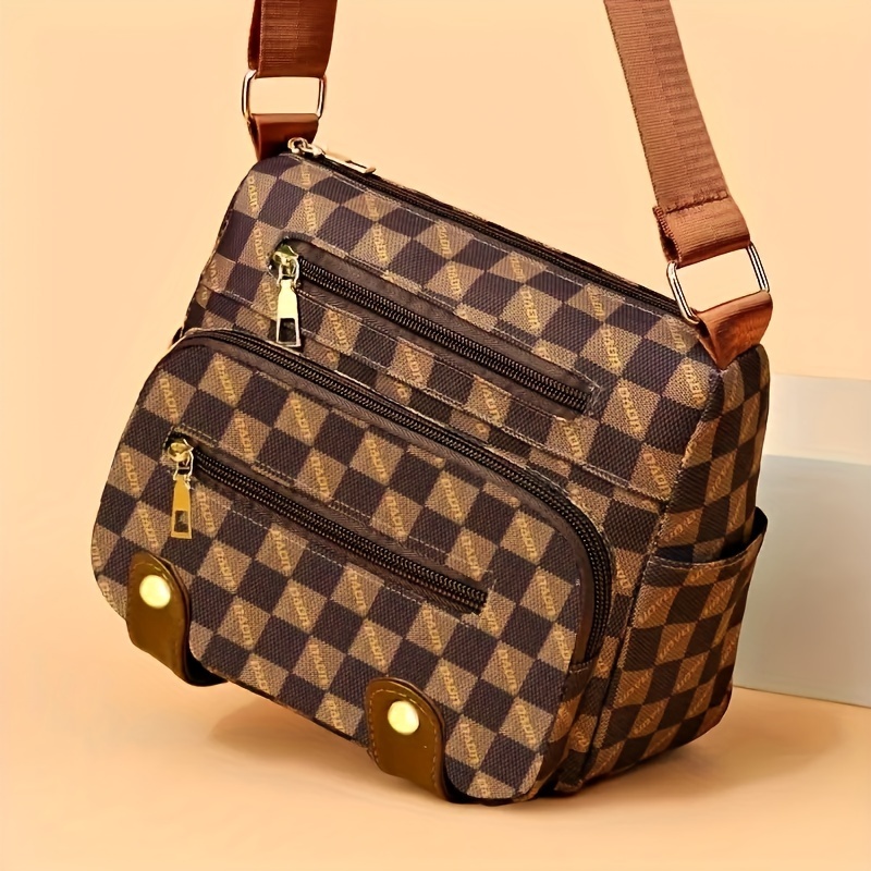 Multiple Pockets Trendy Plaid Crossbody Bag Leisure Tourism Shoulder Bag- Chic Studded Design & Dur