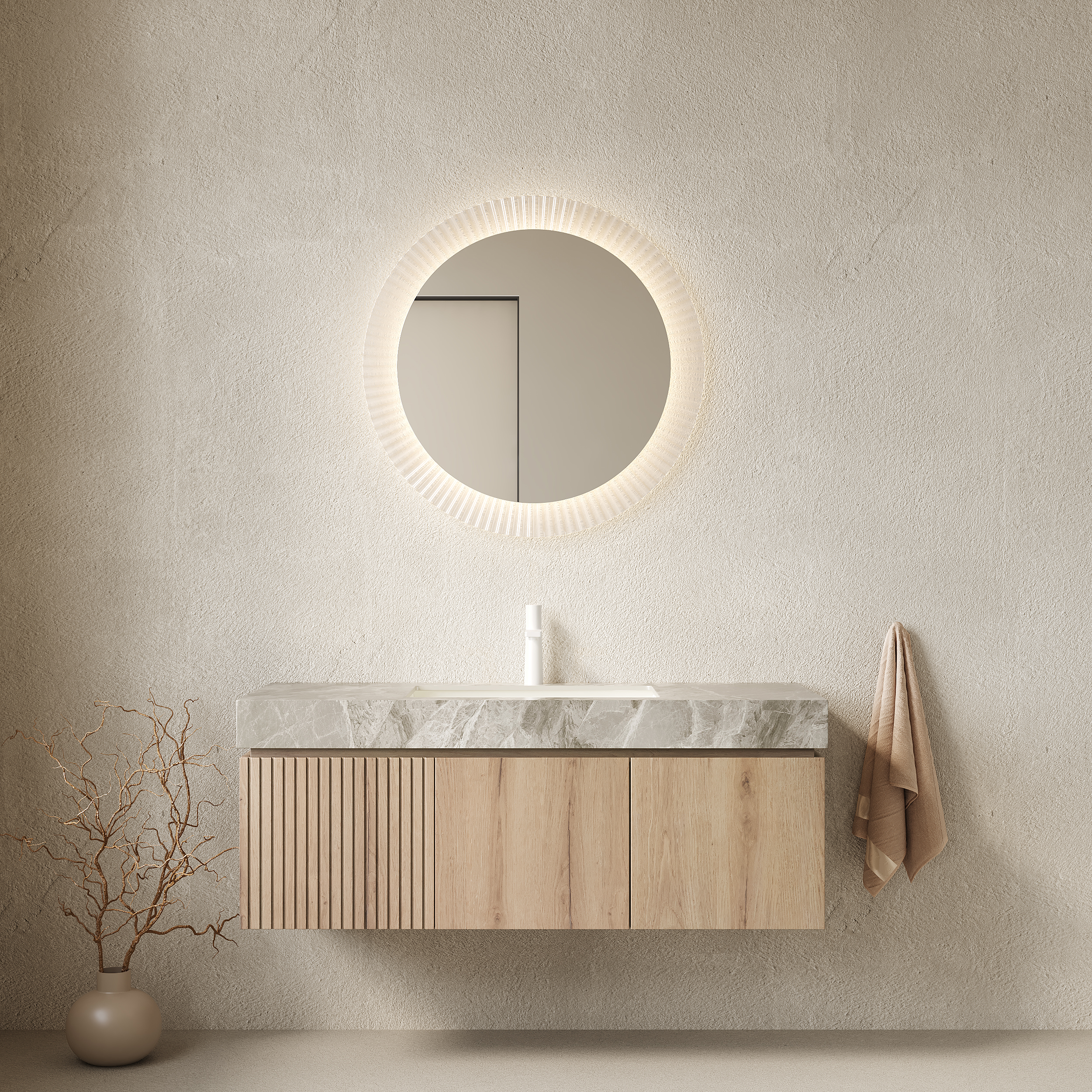 The delicate surface with concave and convex texture is fully mechanized and coated with environmentally friendly wood wax oil, allowing the panel surface to highlight the original natural solid wood texture. The cabinet frame is made of 16mm thickness multi-layer plywood. It has excellent water and moisture resistance to ensure that not easy to be deformed or moldy even in a humid bathroom environment.