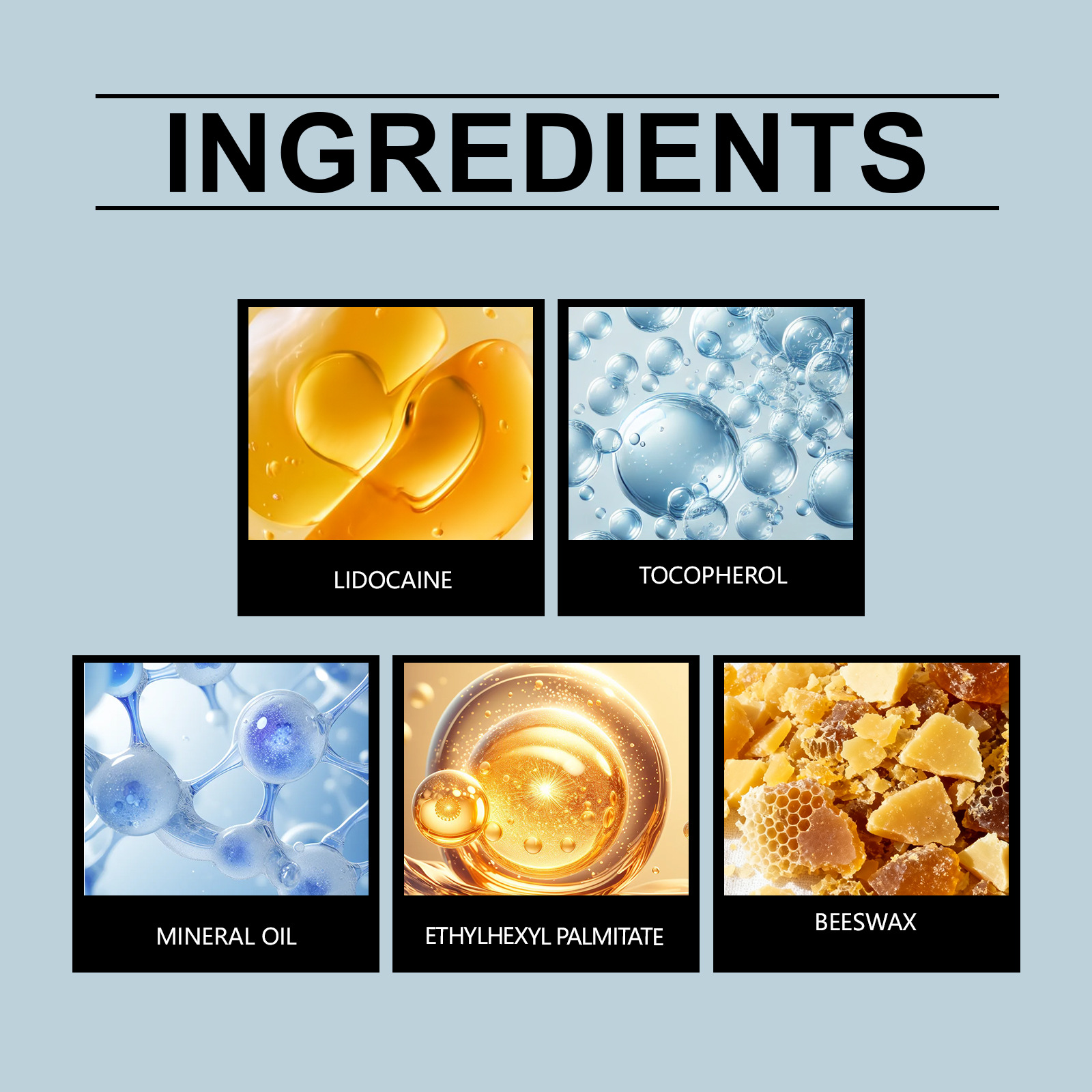 Active ingredients: Lidocaine, Tocopherol (Vitamin E)