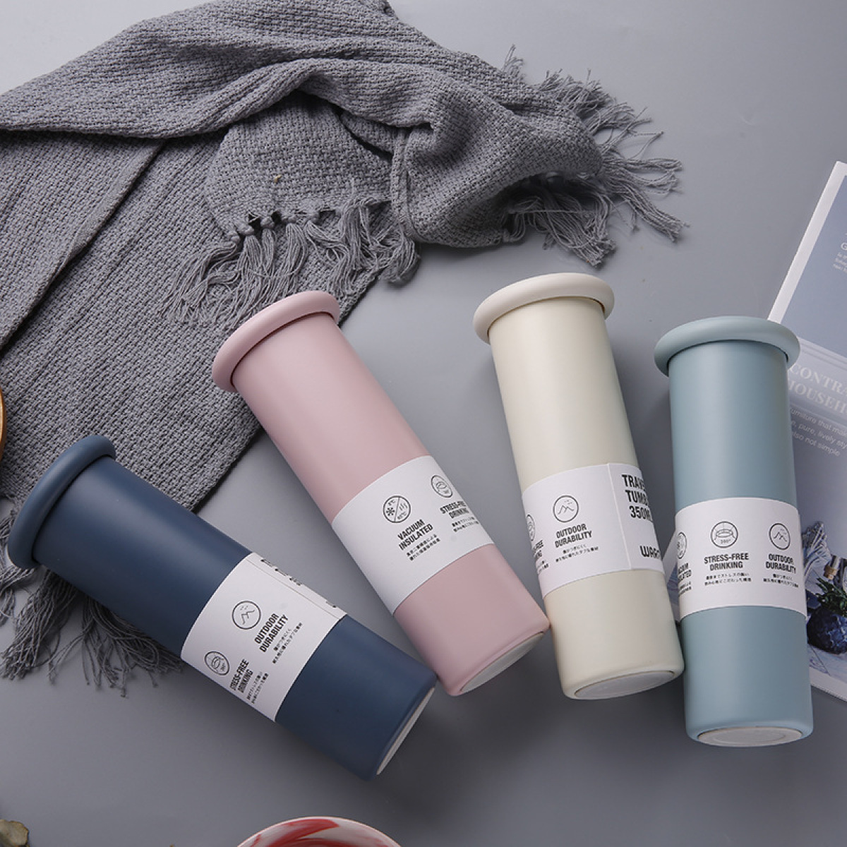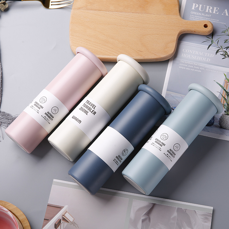 Material 304 inside and 201 outsideStyle Straight CupColor pink, light blue, dark blue, beigeCapacity 350mlSize 19.5*6.5cm