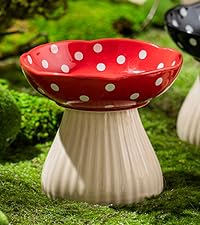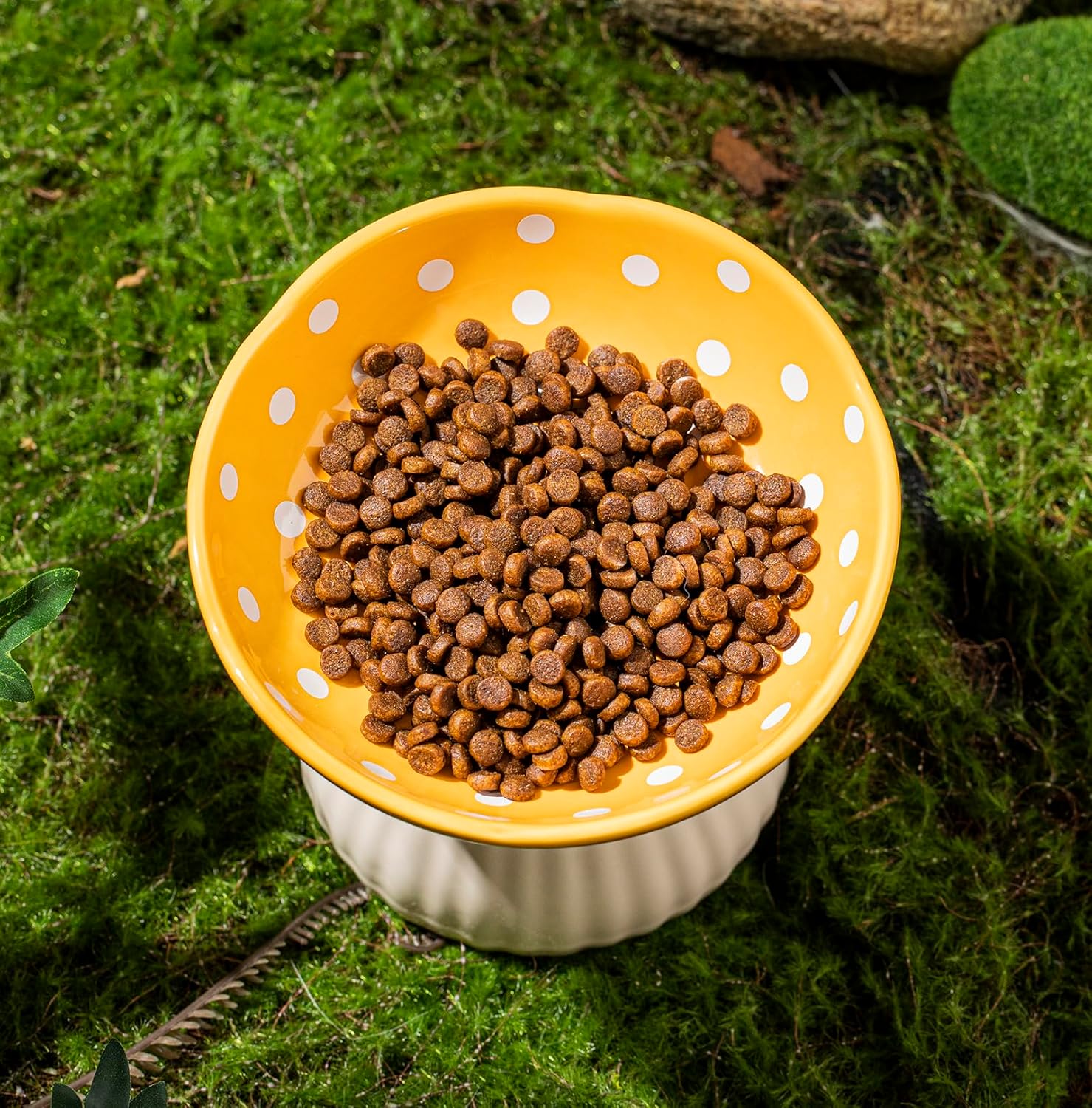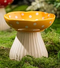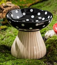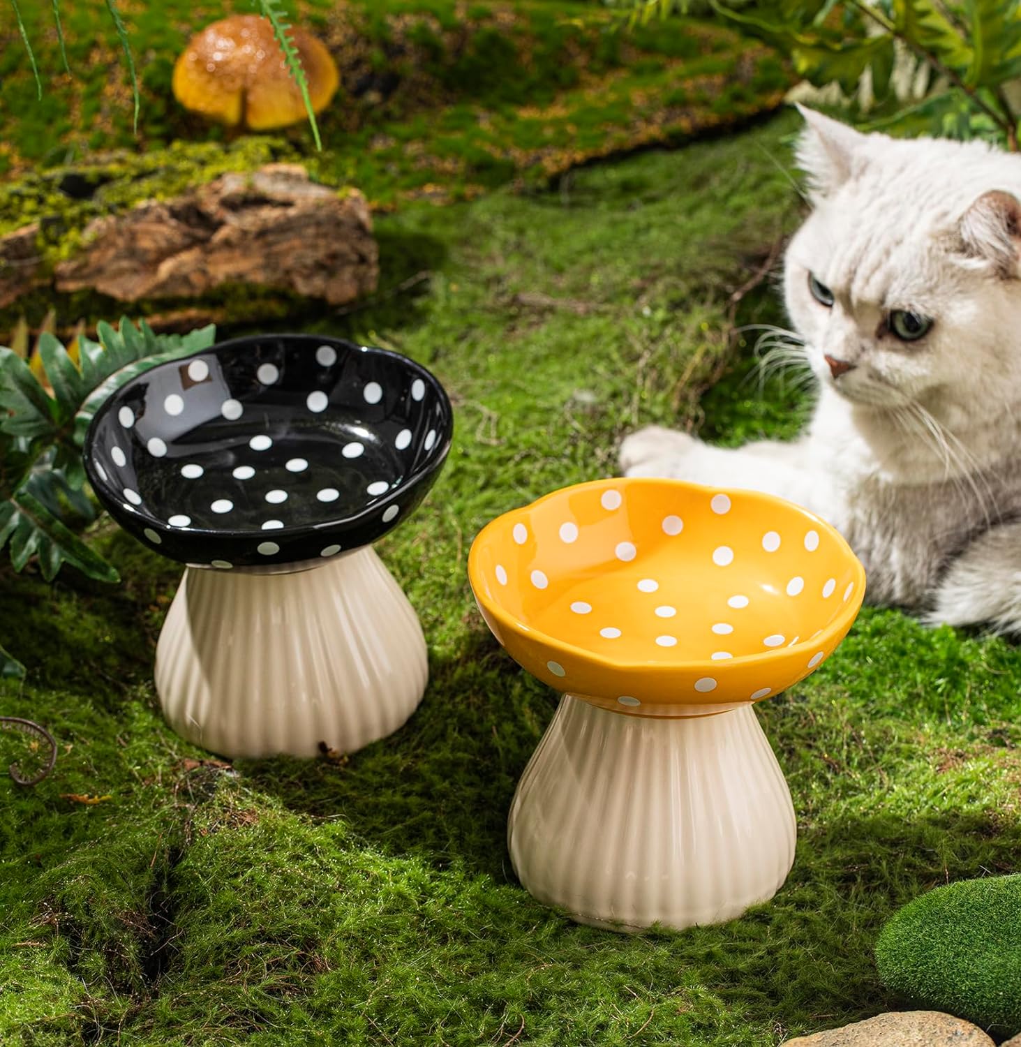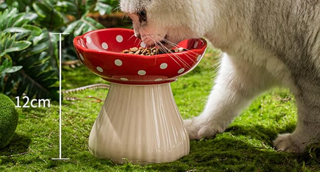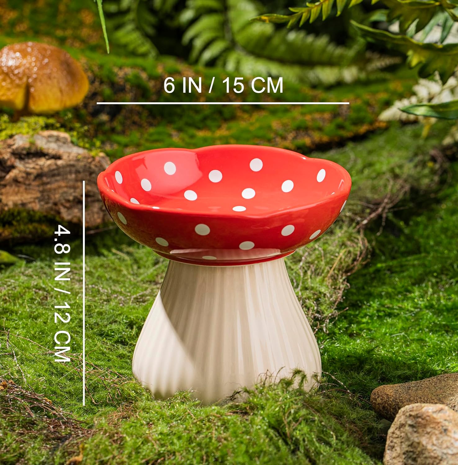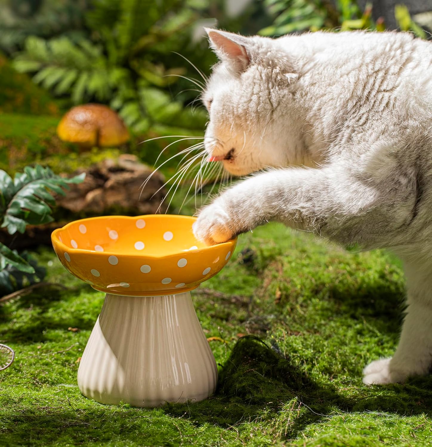 Mushroom Raised Cat Bowl With Cute Polka Dot Design And Safe Ceramic Material For Small Pets