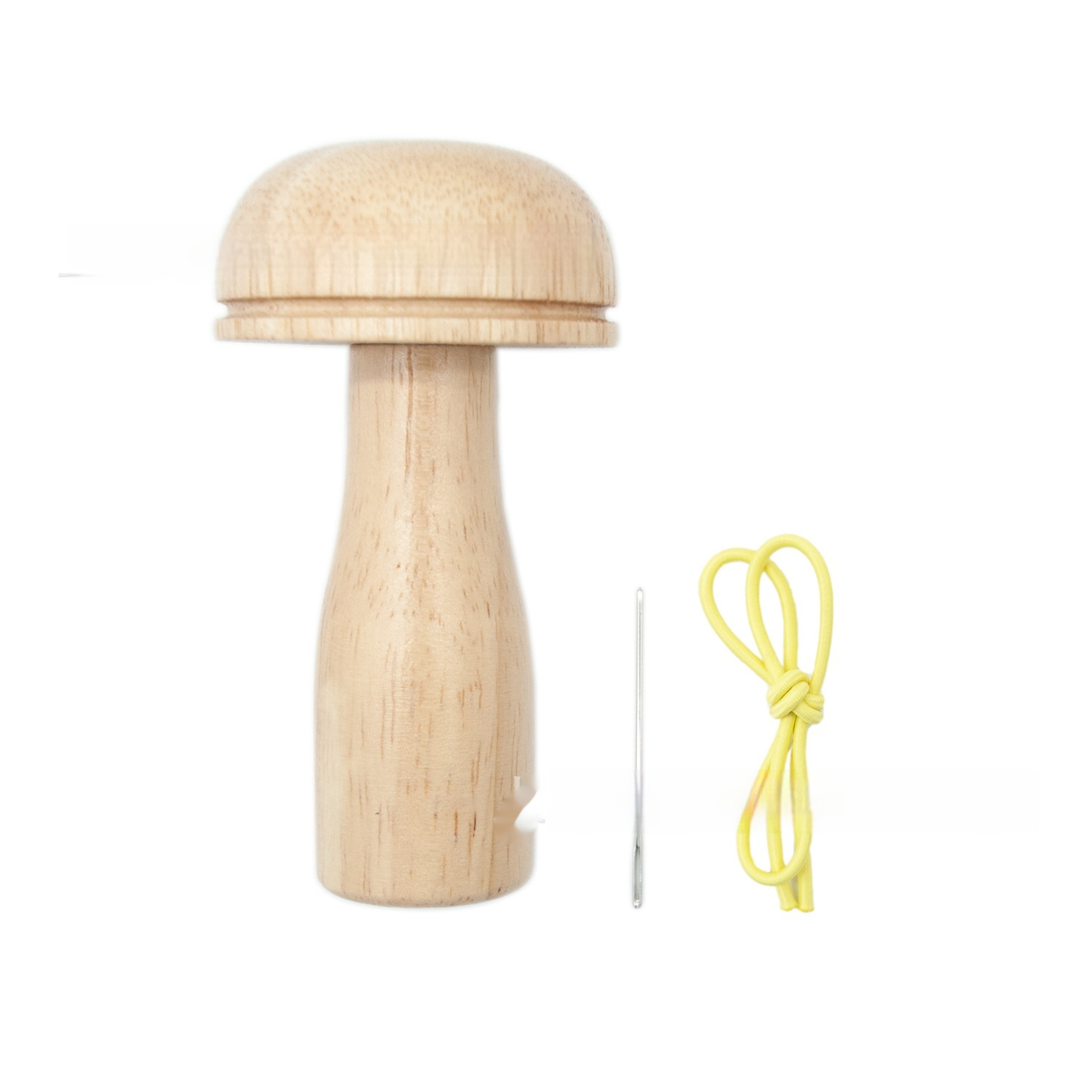 Content: Wooden mushroom with syringe (including rubber band, 1 large eye needle, rubber band length of about 30cm, large eye steel needle 1.25 * 52mm tip)
