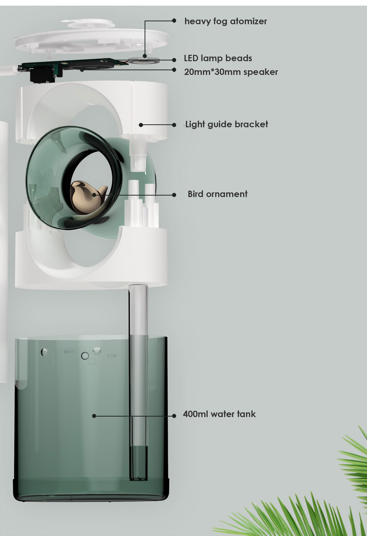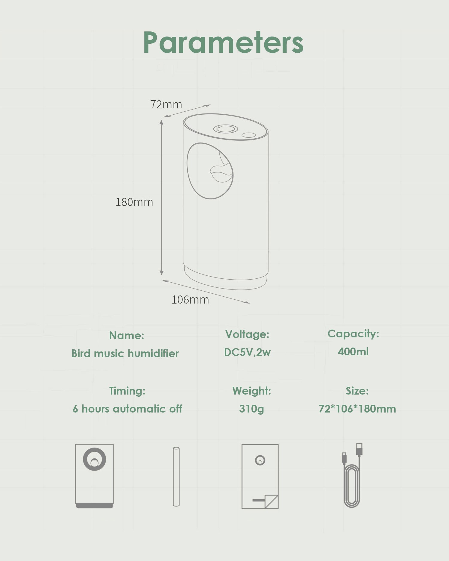 Simulating the sound of birds in nature, bird music humidifier.