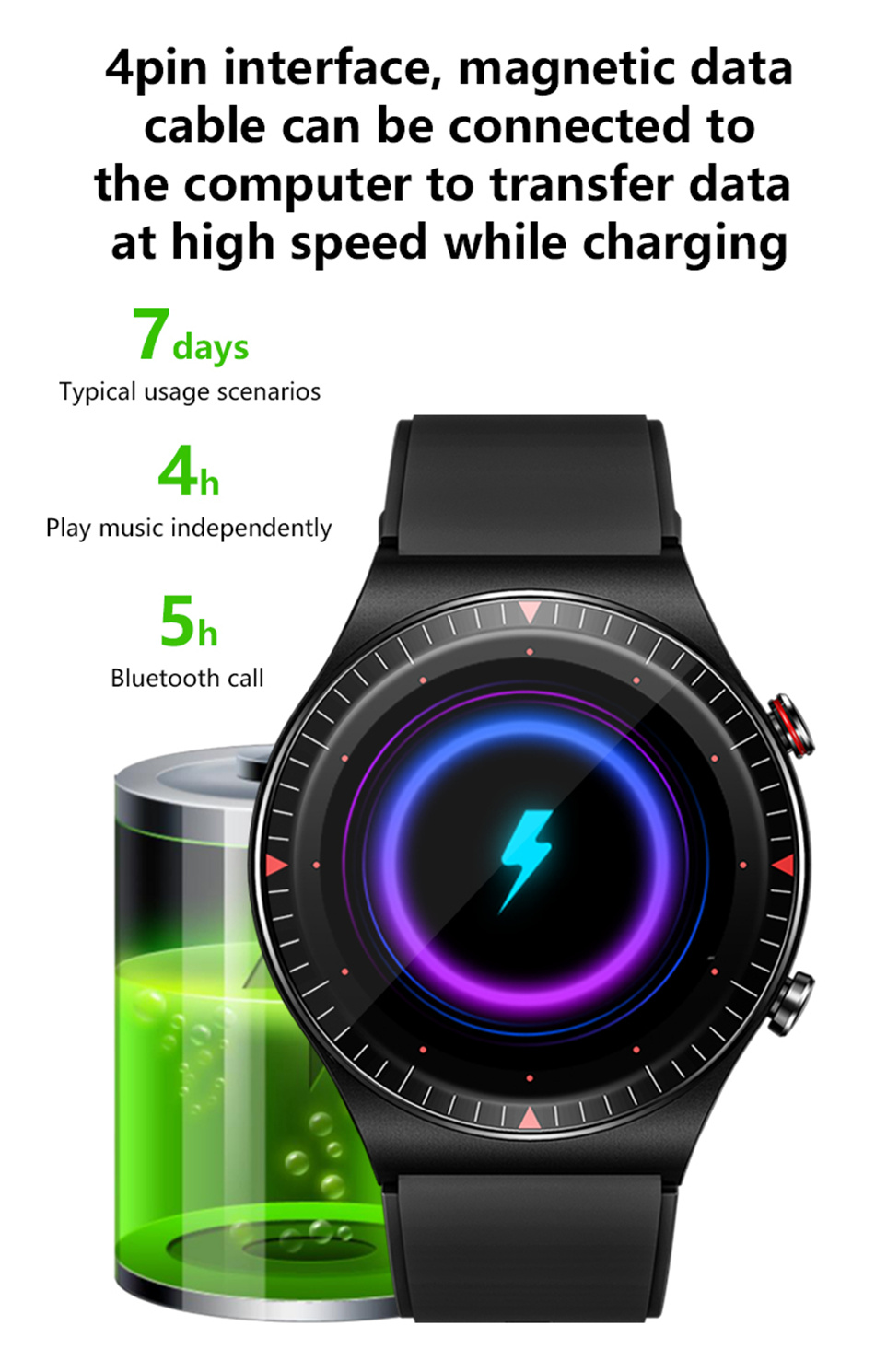 6. Standby time: 7-10 days for BLE connection, 3-5 days for dual Bluetooth status, 5 hours for continuous call or music playback