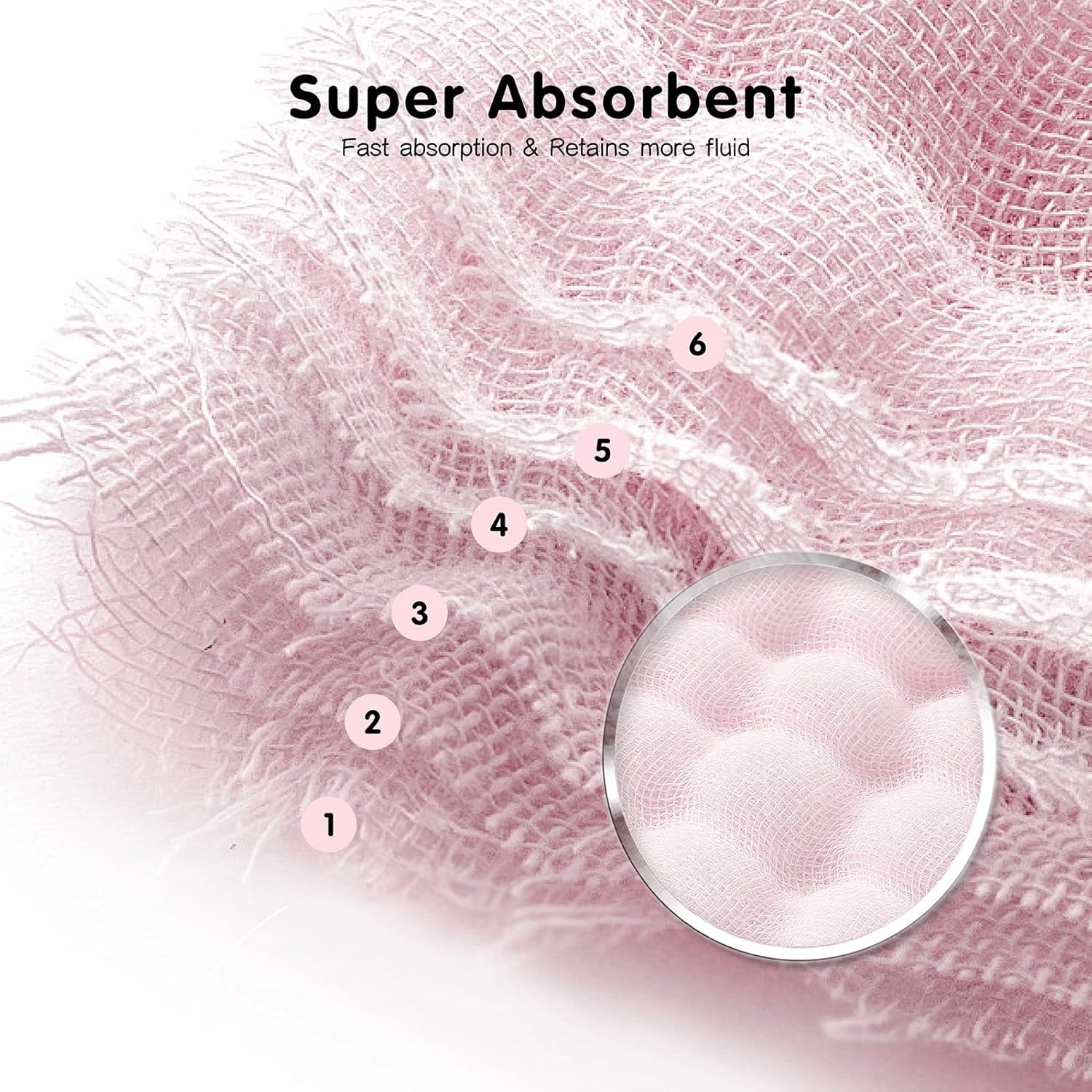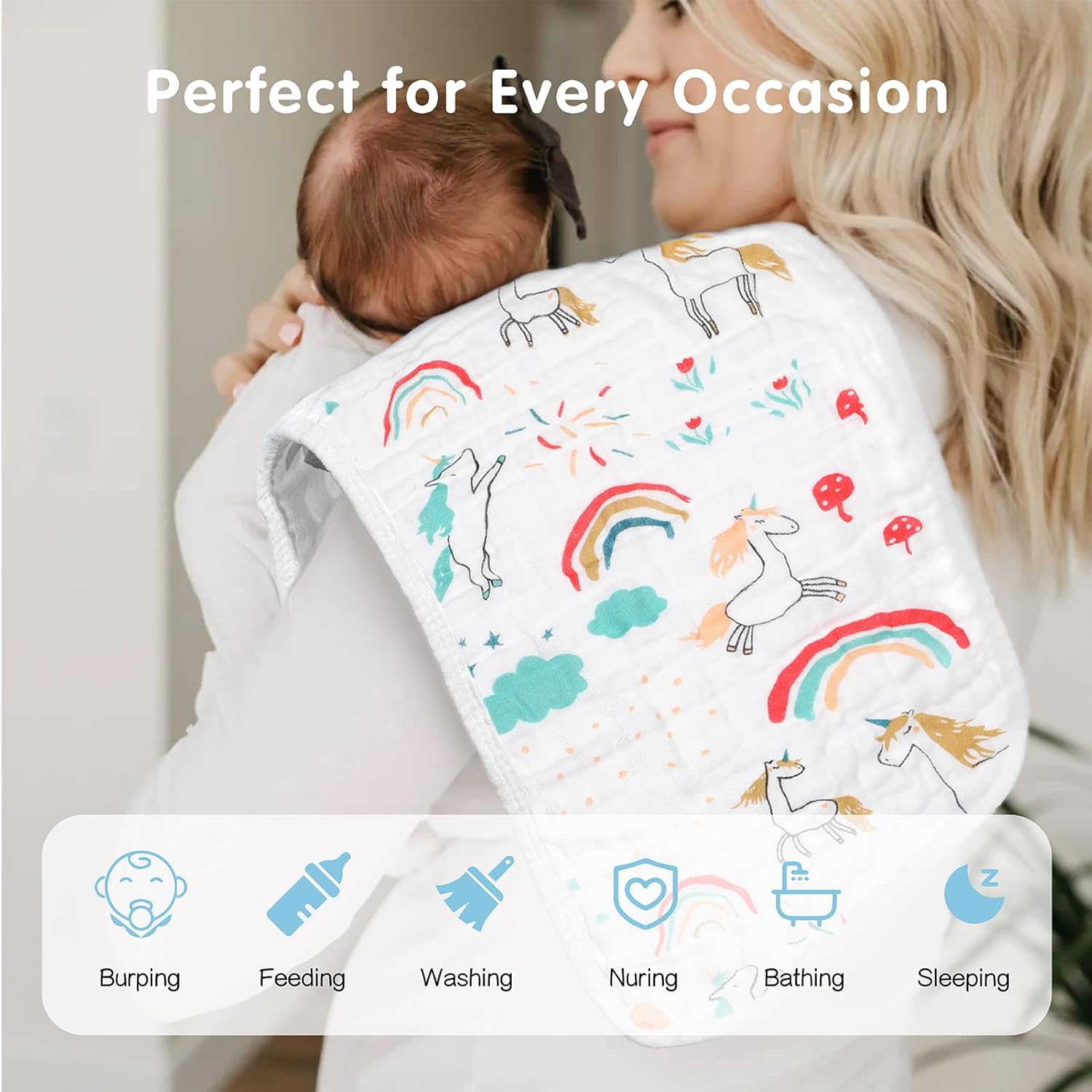 Superior Absorbency - Our muslin burp cloths feature a revolutionary 6-layer design that offers maximum absorbency. Engineered to handle the messiest spills and spit-ups, they quickly soak up liquids, keeping both your baby and clothes dry. The soft, quick-drying fabric ensures that you're always ready for those unexpected moments.