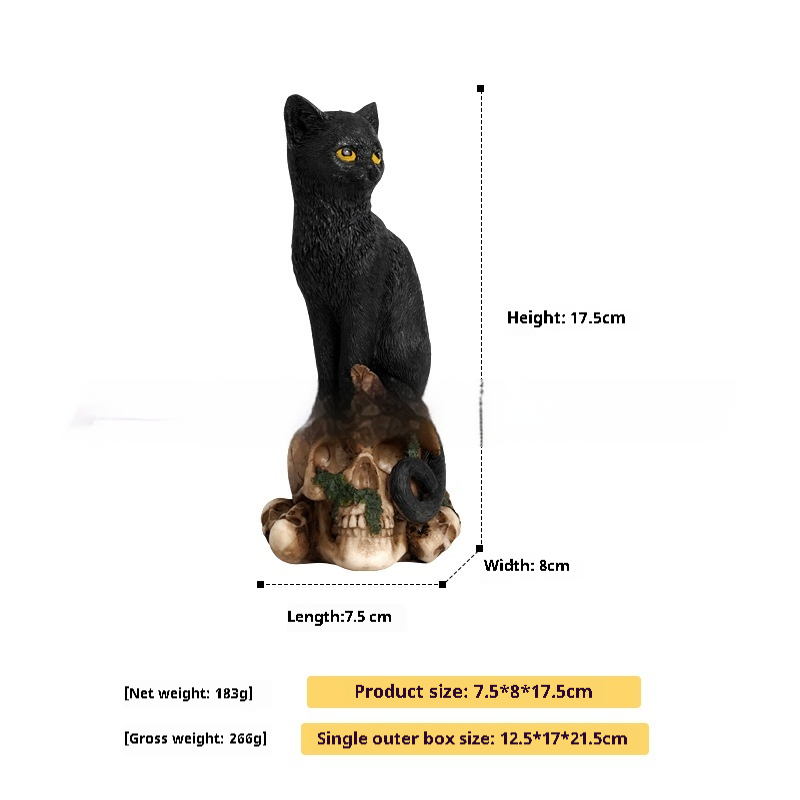 Color: Crow stand on skull, Black Cat stand on skull