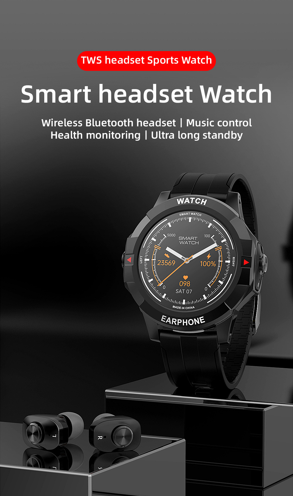 Packing List: manual, packaging, watch, charging cable, a pair of headphones