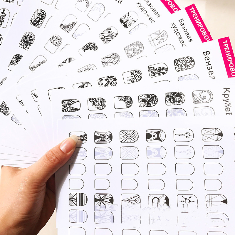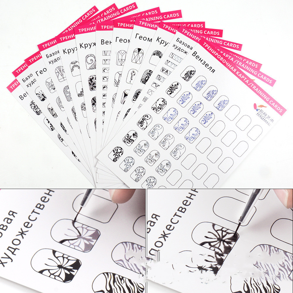 Nail art workbook, copy board, novice nail art drawing thread, chain link flower hand-painted practice tool, can be erased and reused;