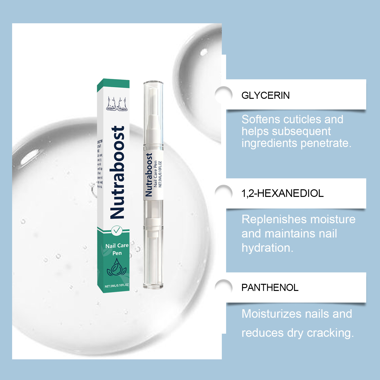 Product information:Ingredients: water, glycerin, 1,2- hexanediol, tocopherol (vitamin E), panthenol.