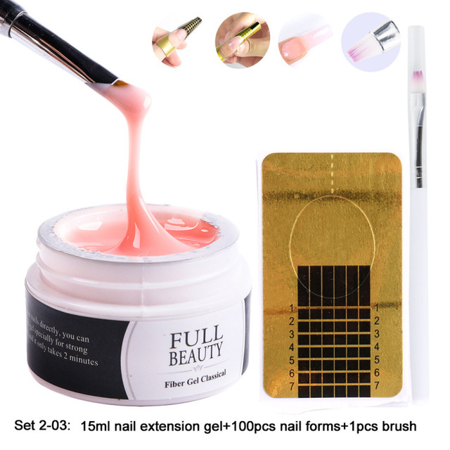 Set 3: 4 extension gel + ultraviolet gel brush + 10 glass fiber + 100 nail polish