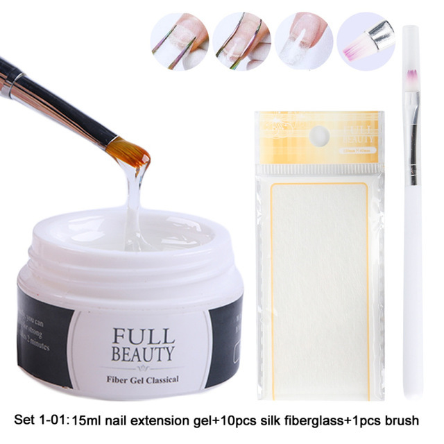 Set 1: 1 extension gel + ultraviolet gel brush + 10 silk fiberglass