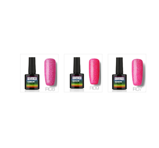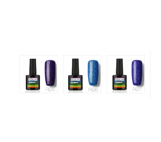 Nail free, long-lasting, non-toxic, nail polish, ROSALIND phototherapy glue, star studded rainbow system.