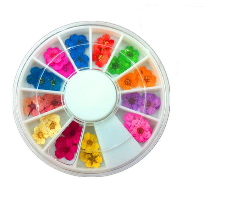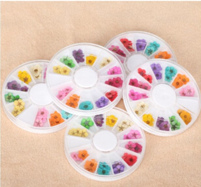 Material: natural real flowerColor: 12 colorsNail Product Category: Nail SequinsSpecifications: 36 pieces, 60 pieces