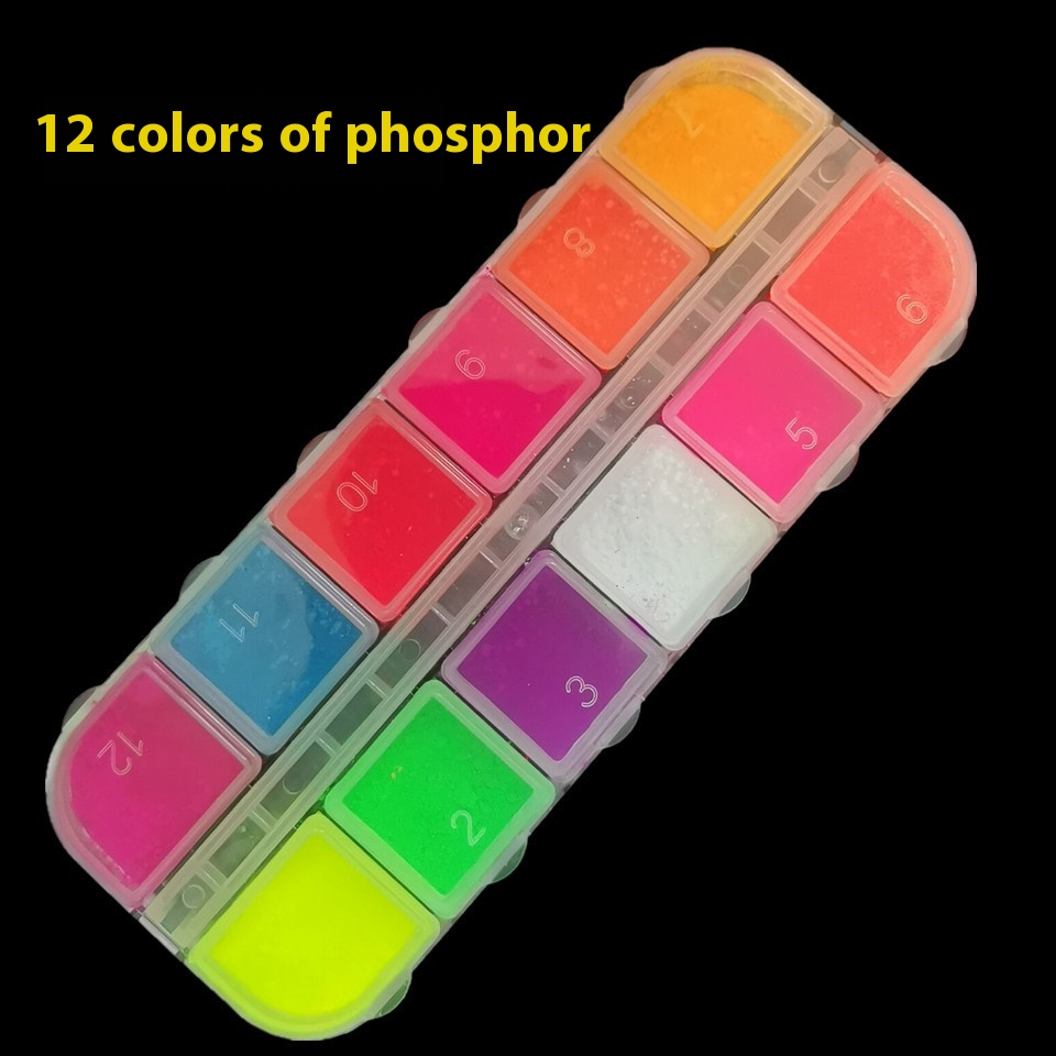 Specifications: 12 colors fluorescent powder, 12 colors luminous powder
