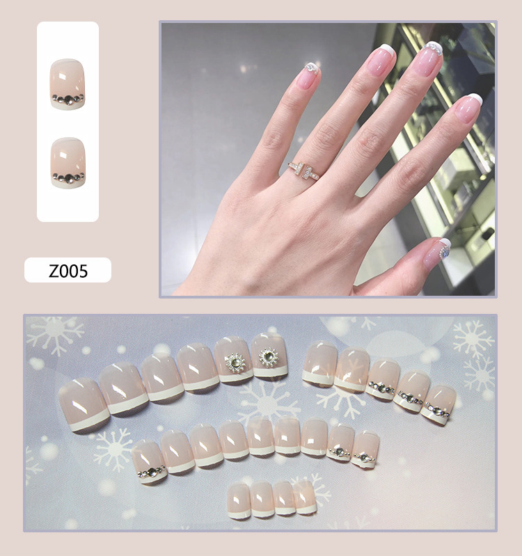 Product InformationColor: Z001, Z002, Z004, Z005, Z006, Z010, Z013Shelf life: 3 yearsName: Fake nailsPackage:False nails*1