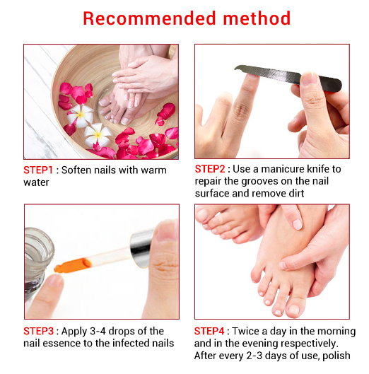 3. Apply 3-4 drops of the nail essence to the infected nails.