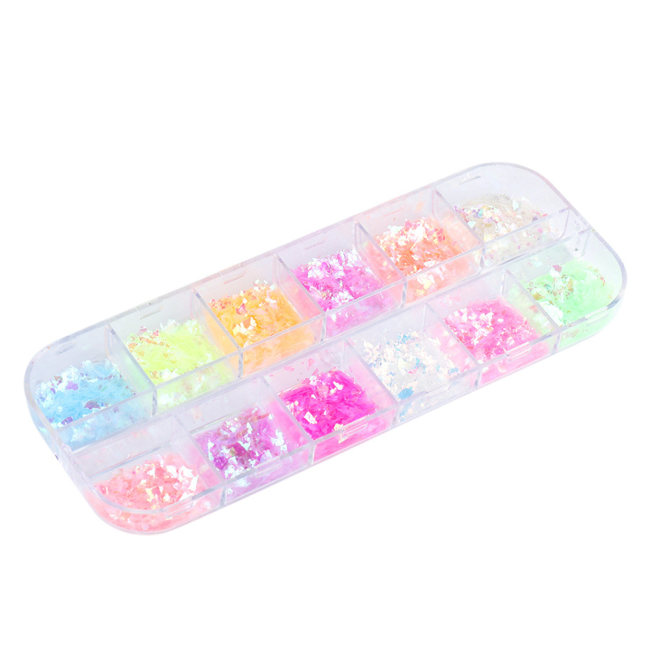 Product information:Specifications: 12 grid SP,12 grid TS,12 grid NH,12 grid TH Material: Sequins Net content: 18g