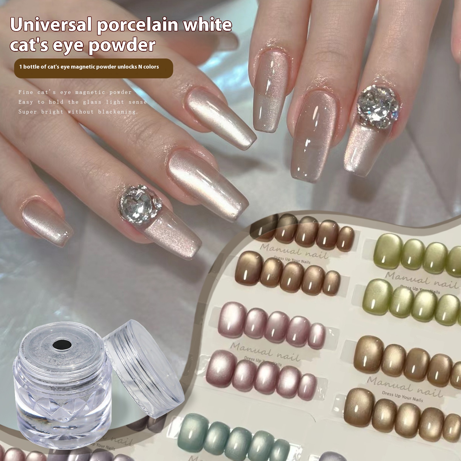 Product information:Specification: Universal porcelain white cat eye nail powderNet content: 0.2g