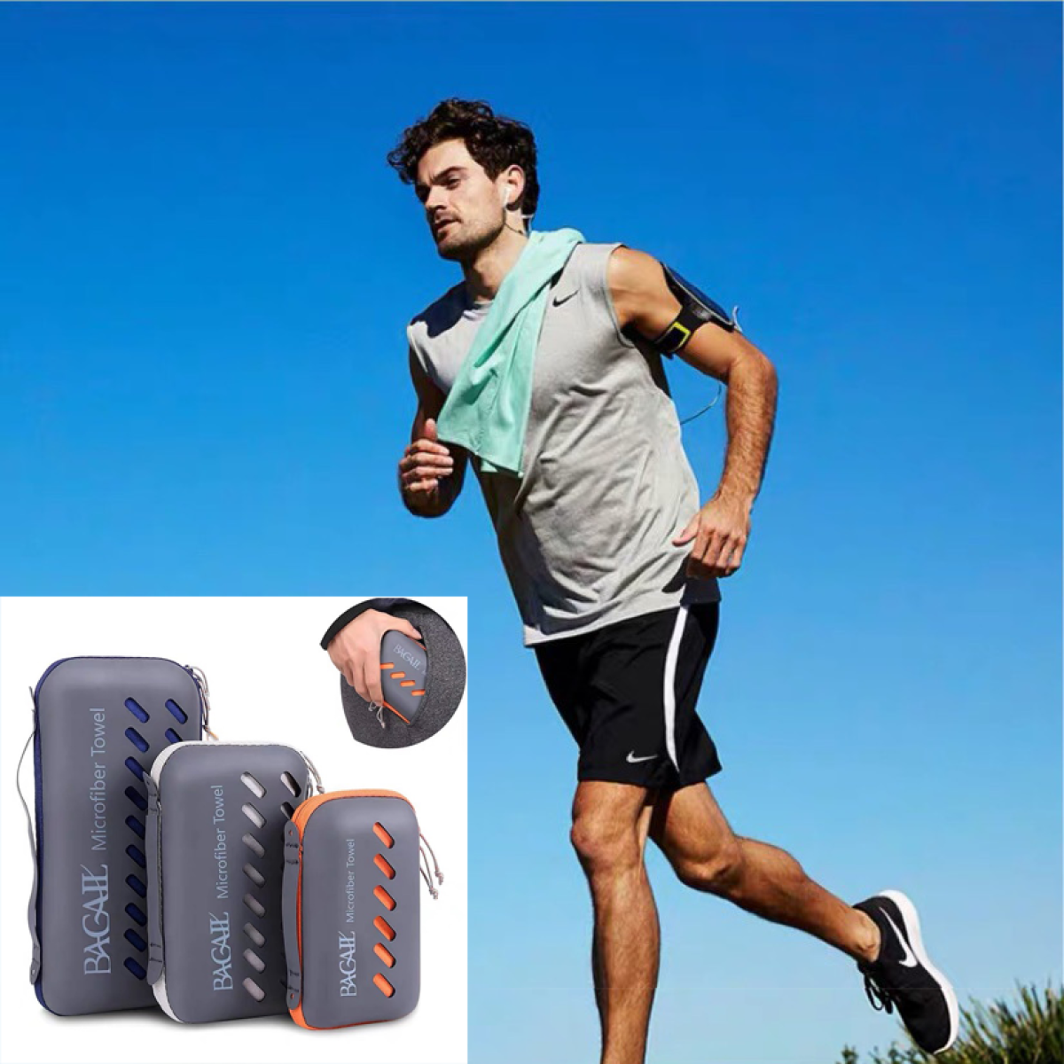 Towel features: water-absorbing, quick-drying, portable