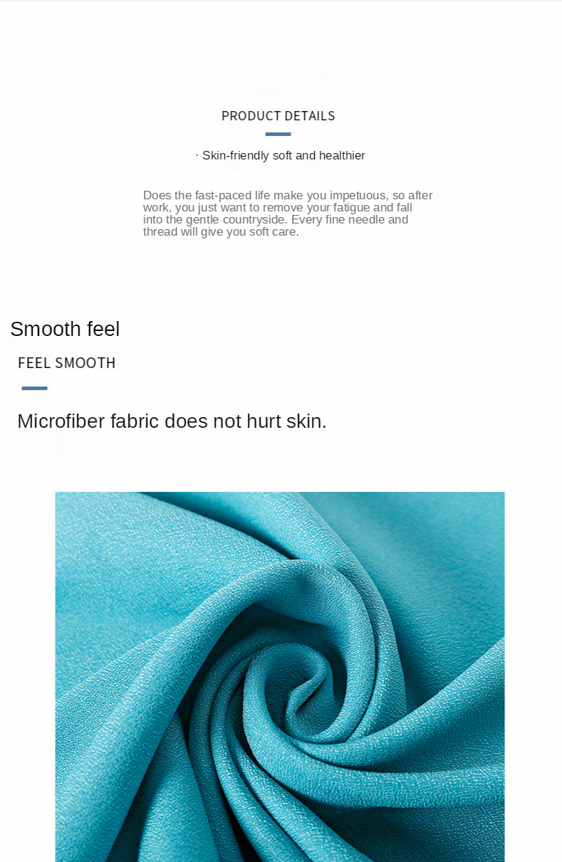 Microfiber, soft and comfortable, absorbent and breathable, non-irritating, bring you the perfect touch of skin.