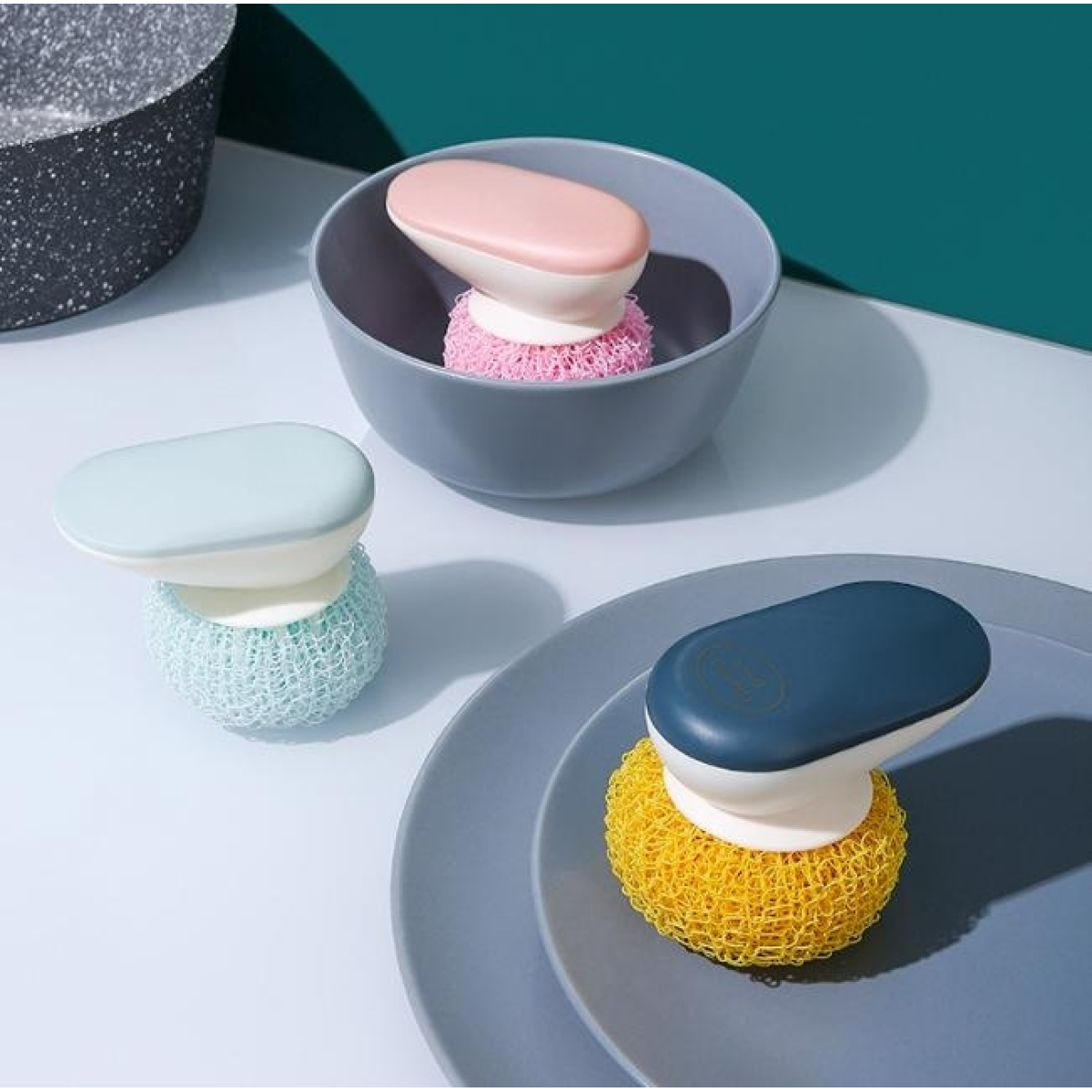 Strong decontamination handle fiber cleaning ball, thick and tight hair I convenient decontamination and stain removal.
