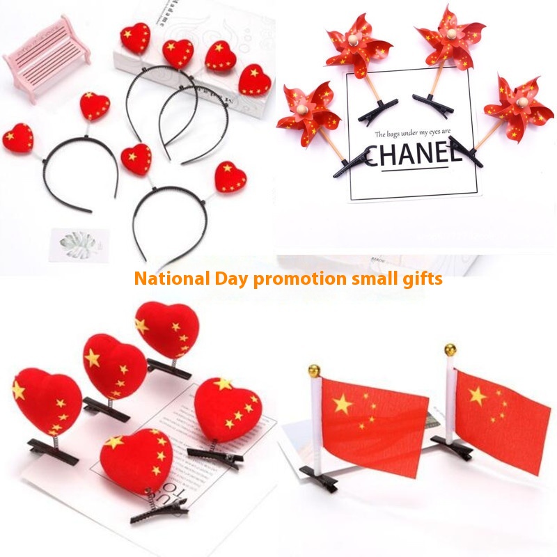 Color: No. 8 National Flag 1, love five-angle heart barrettes 1, cloth national flag barrettes 1, flag windmill barrettes 1, love five-angle heart headband 1, cloth national flag headband 1, one national day brooch mix and match, 5 love stickers, 5 pentagram heart stickers, 5 Chinese heart stickers, 1 National Day pentagram heart Headband, 1 National Day love Headband, 1 National Day coin purse, national Day round hand-held bar balloon 1, national day five-angle heart hand-held bar balloon 1, National Day love balloon headband 1, national day five-angle heart balloon headband 1