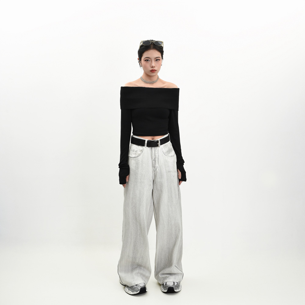National Fashion Retro Washed Distressed Draping Jeans Fashion Design Waste Soil Style