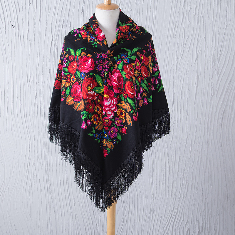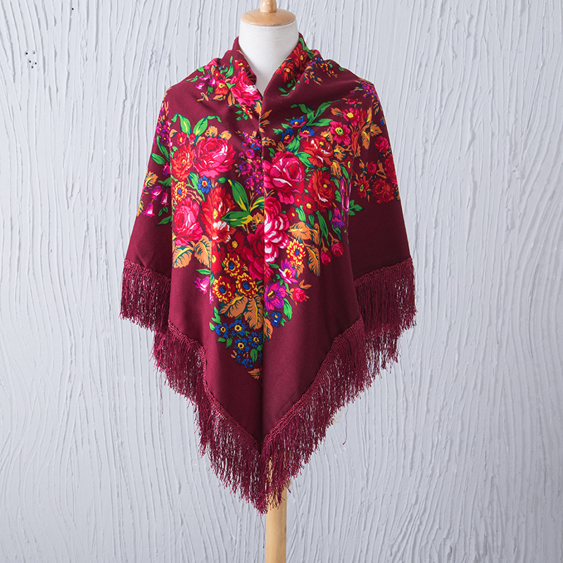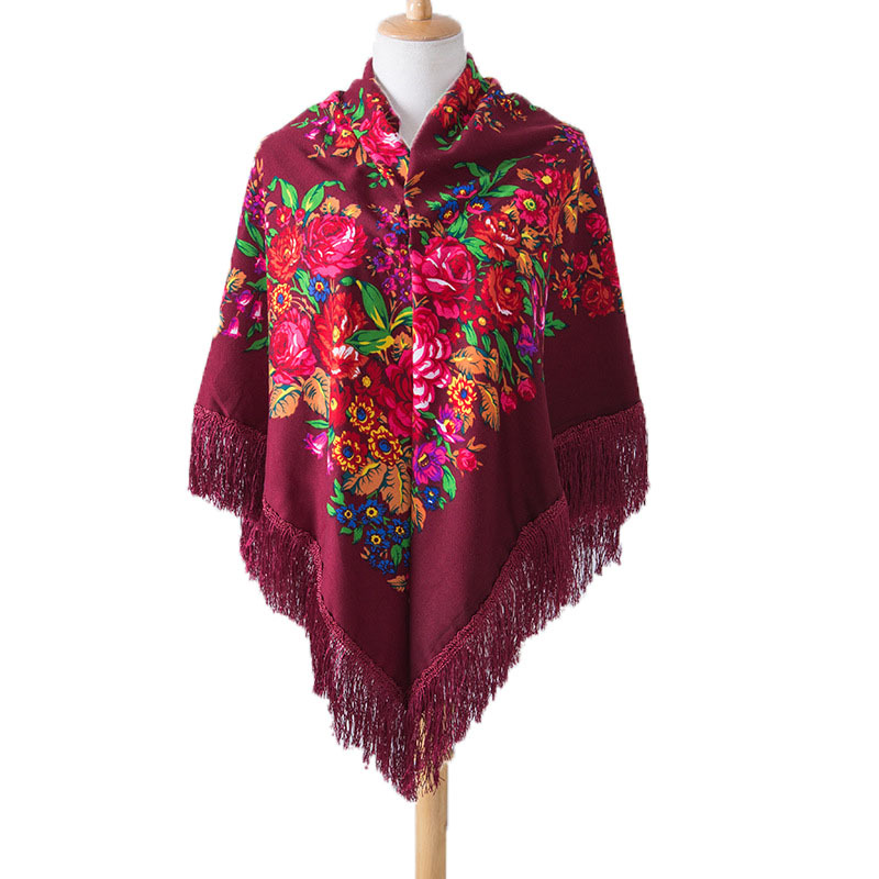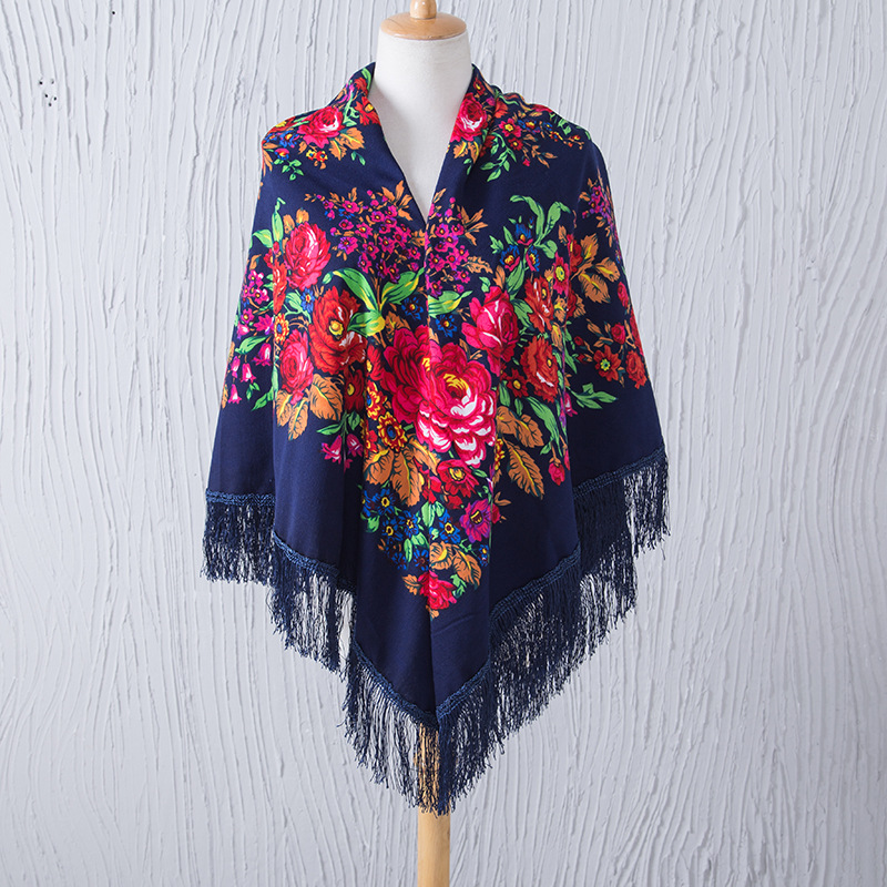 National Style Shawl Printed Tassel Warm Large Square Scarf