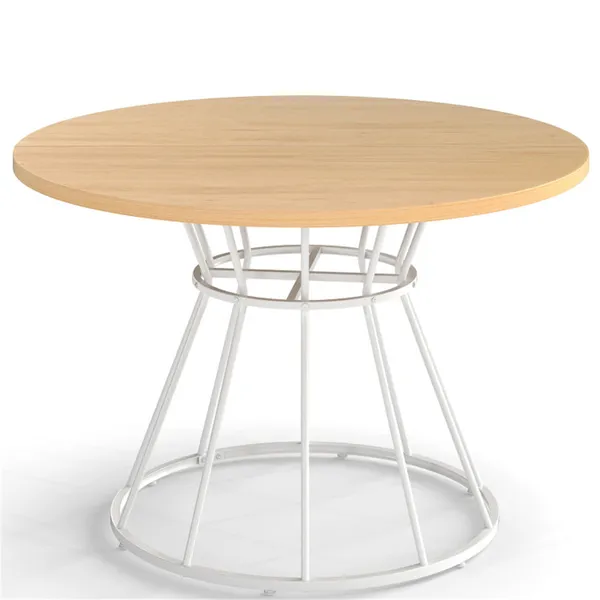 Natural 47" Round Dining Table , Family-Sized For 4-6 People, Hourglass Metal Base & Curved Tabletop
