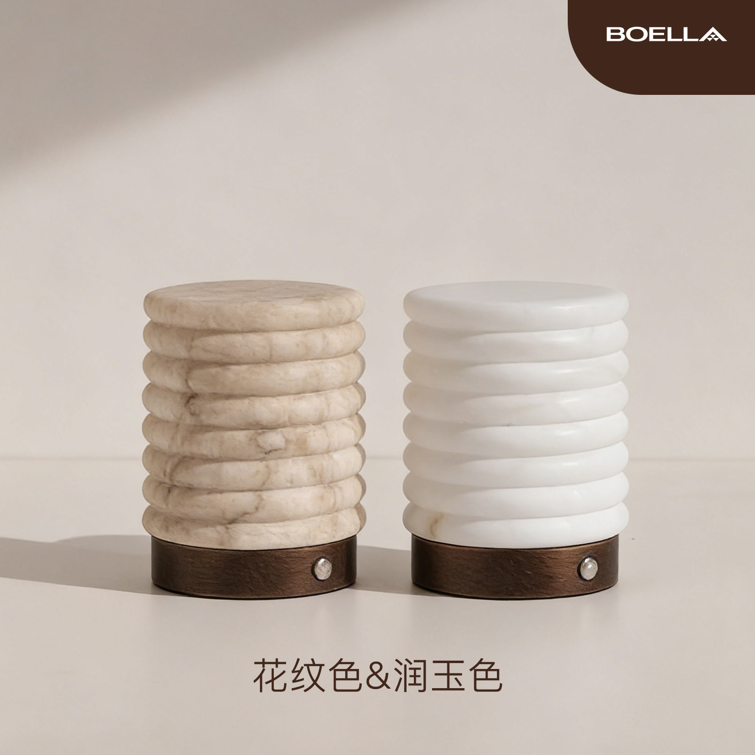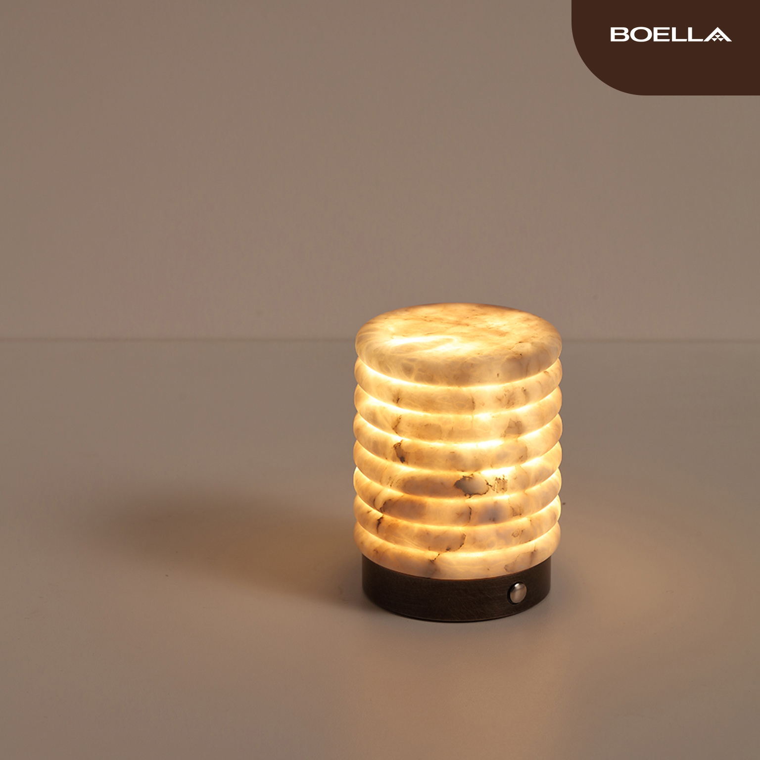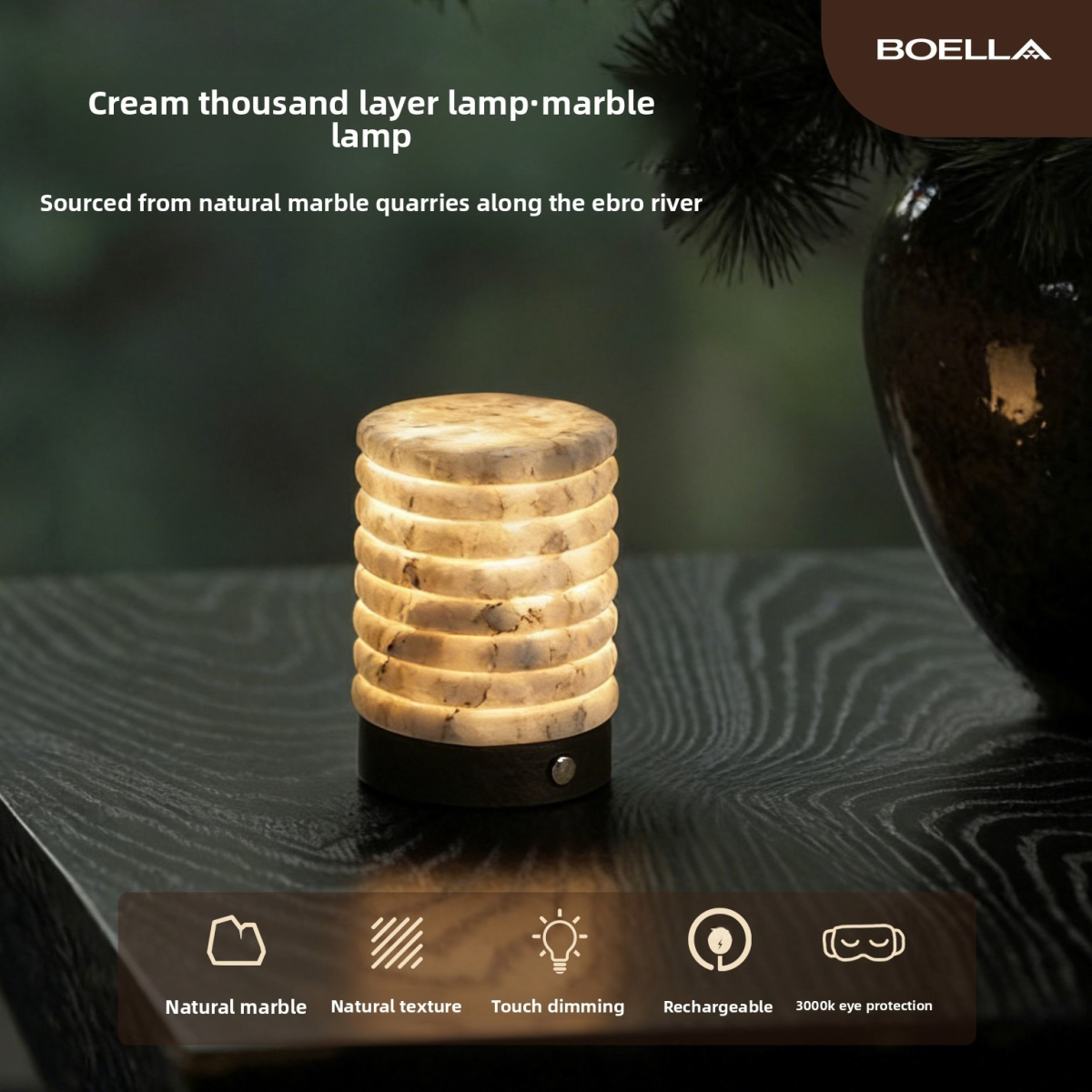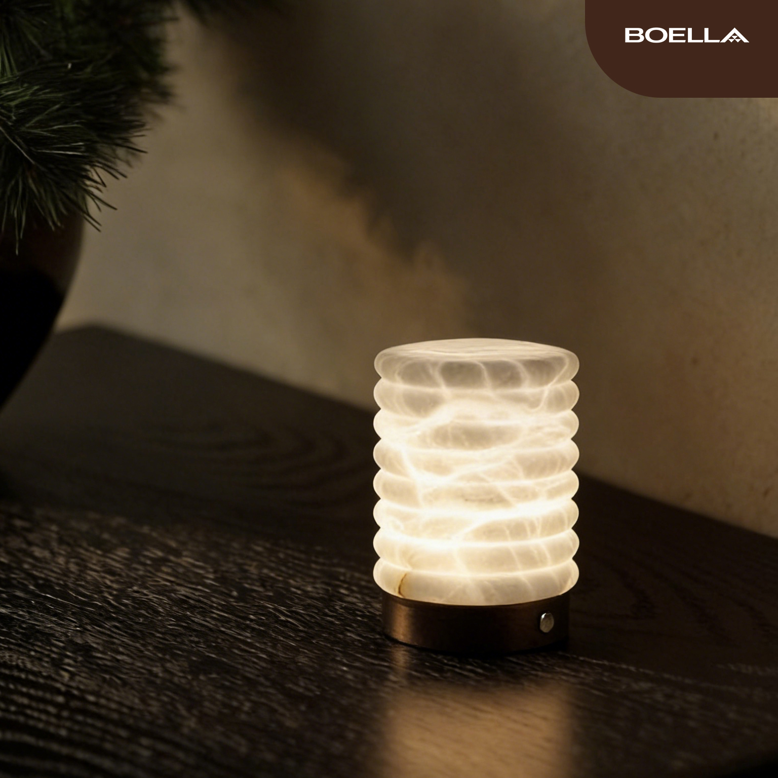 Each lamp is uniquely crafted from natural alabaster, showcasing its own distinct organic textures and patterns. Its signature "Cream Layer" design creates a mesmerizing translucent effect, diffusing a warm 3000K light that mimics the soft serenity of a sunset.