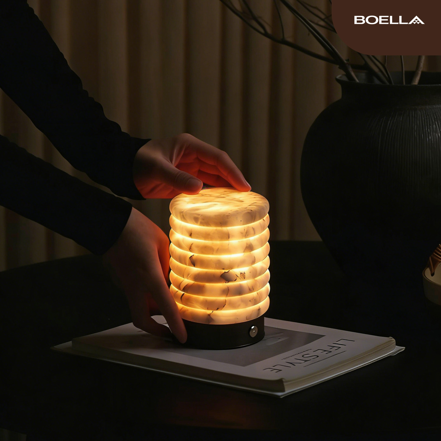 The soft, diffused light through the natural stone layers creates a therapeutic atmosphere, making it an ideal companion for your nightstand, meditation corner, or minimalist living room.
