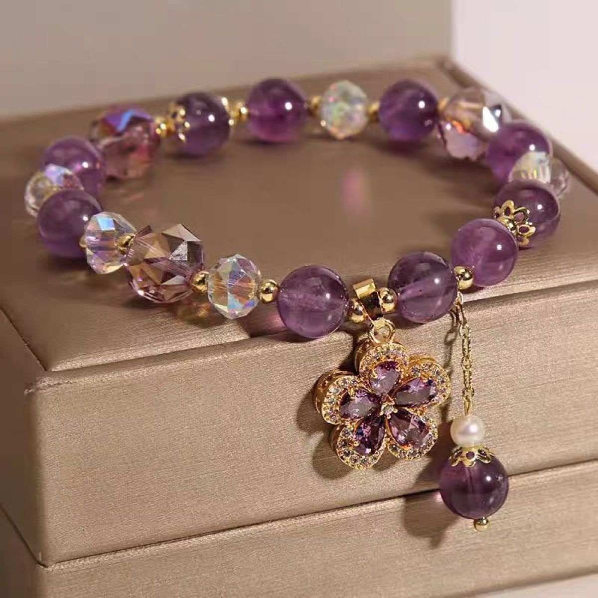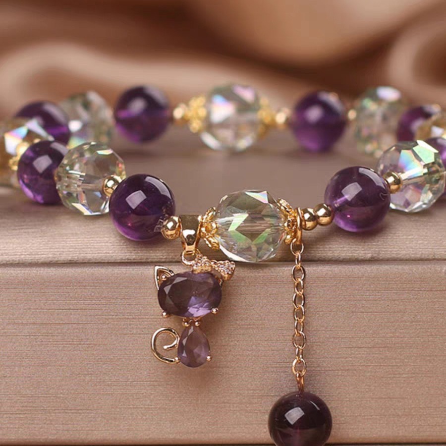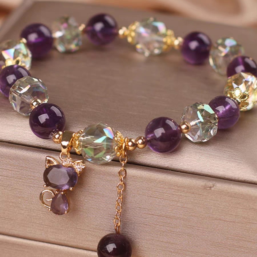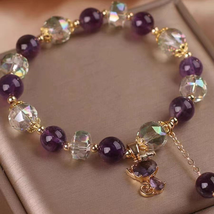Color: Natural amethyst Fox pendant bracelet, natural purple crystal five-leaf flower pendant lucky bracelet