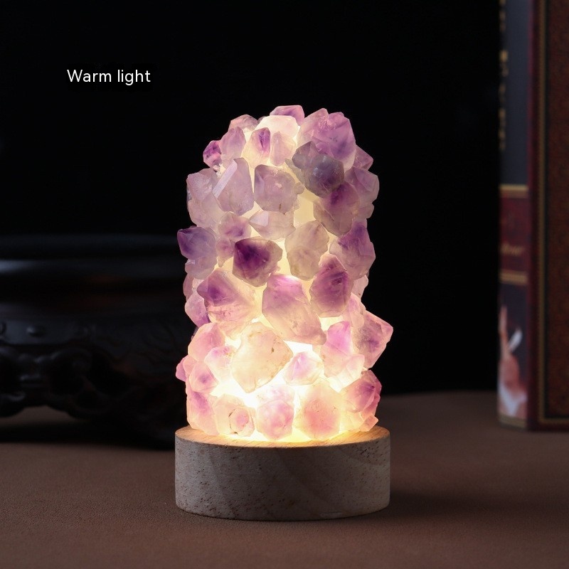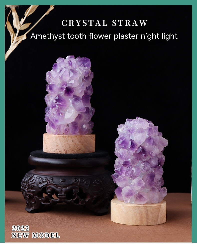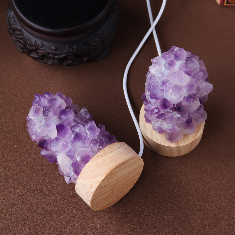 Natural Amethyst Vug Tooth Flower Mini Night Light Usb Plug-in