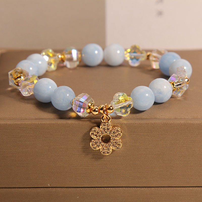 Natural Aquamarine Bracelet Women's Light Luxury Clover Crystal