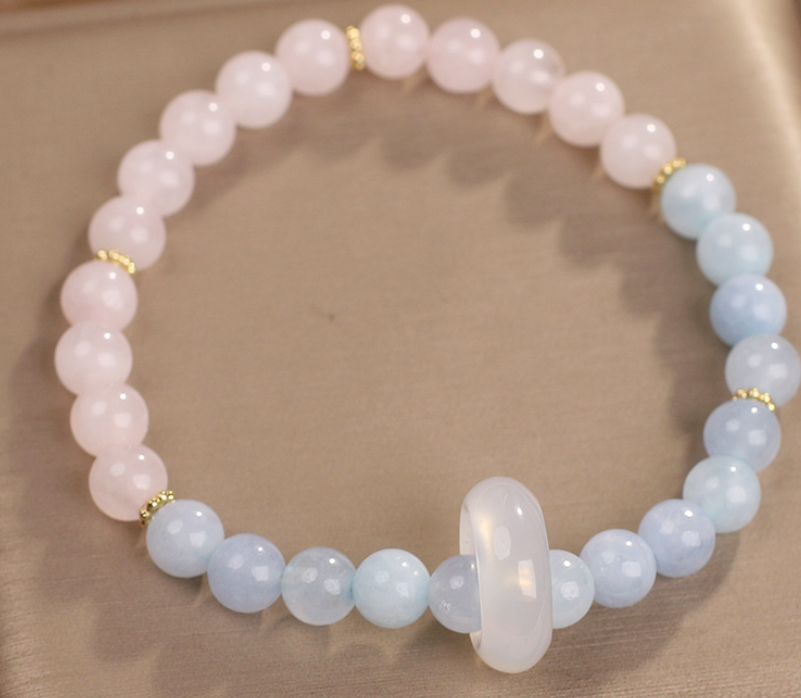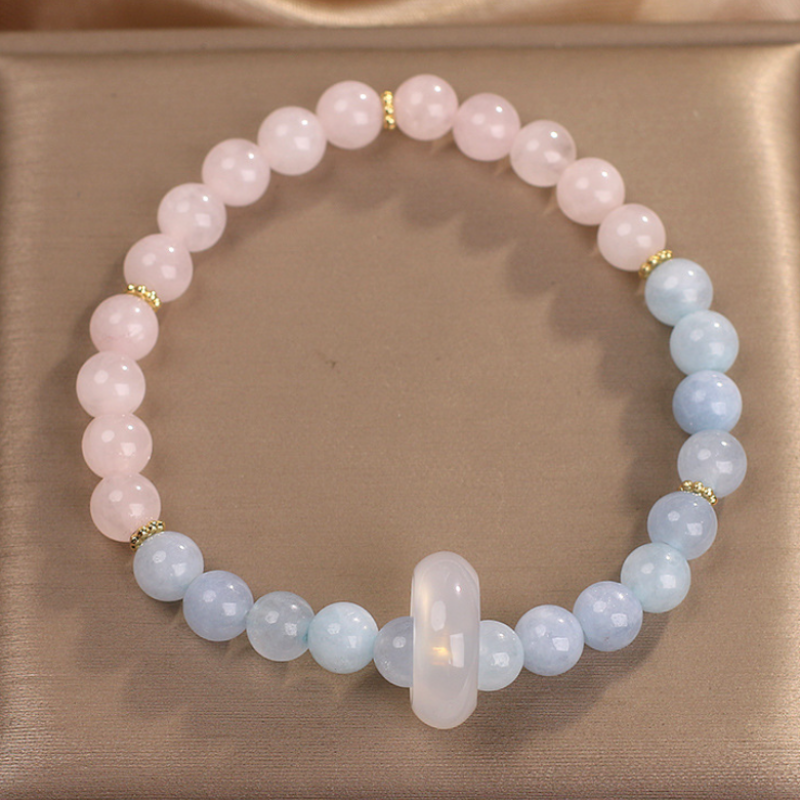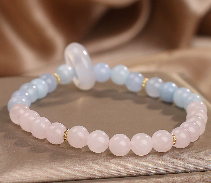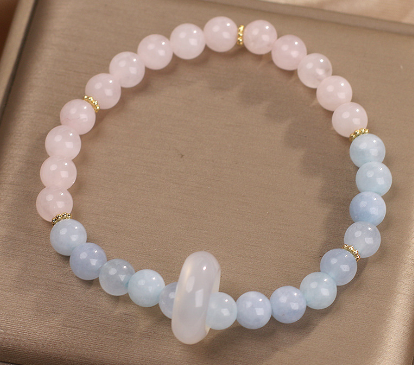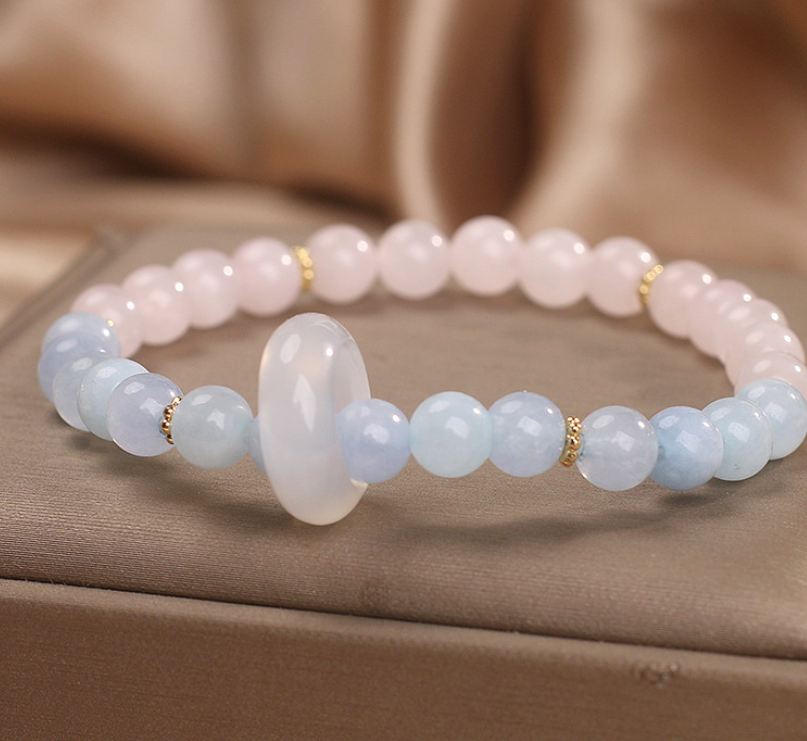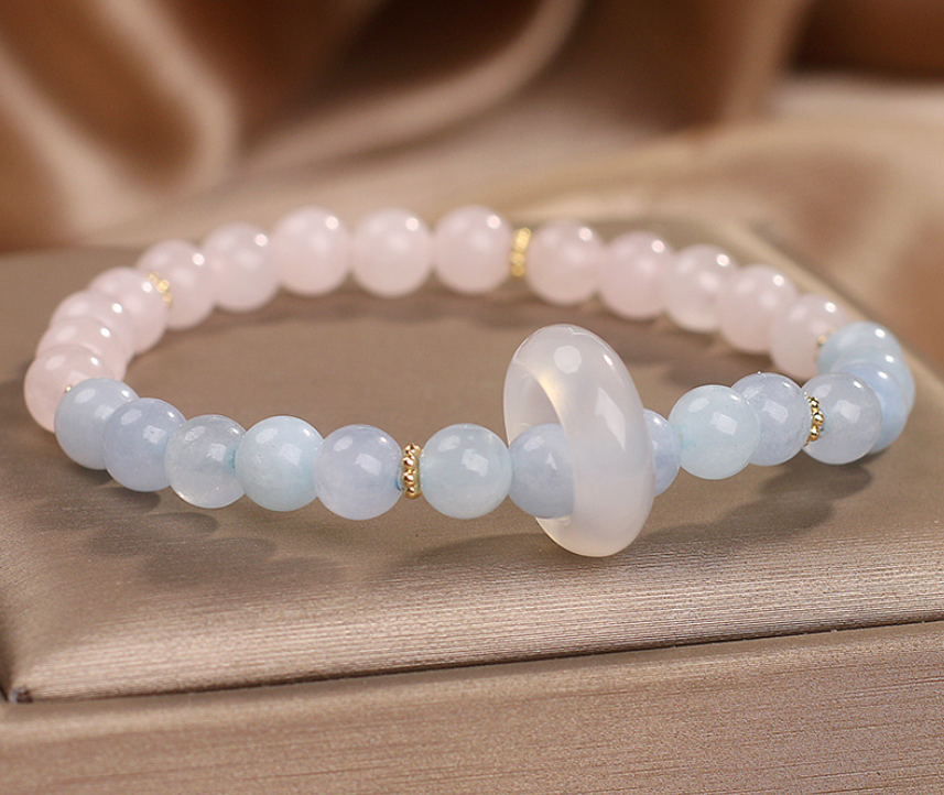 Natural Aquamarine Crystal Beaded Bracelet Chinese Style