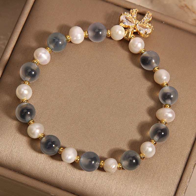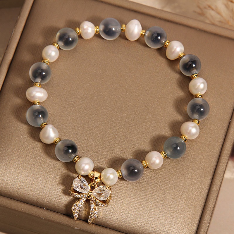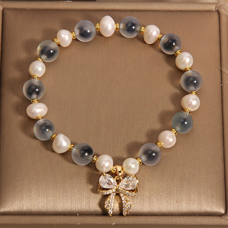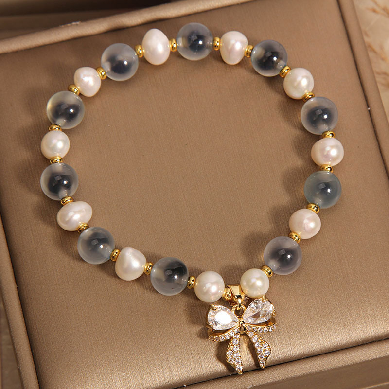 Color: blue sugar heart agate freshwater pearl bow zircon, pink sugar heart agate freshwater pearl bow zircon, yellow sugar heart agate freshwater pearl bow zircon