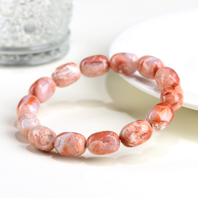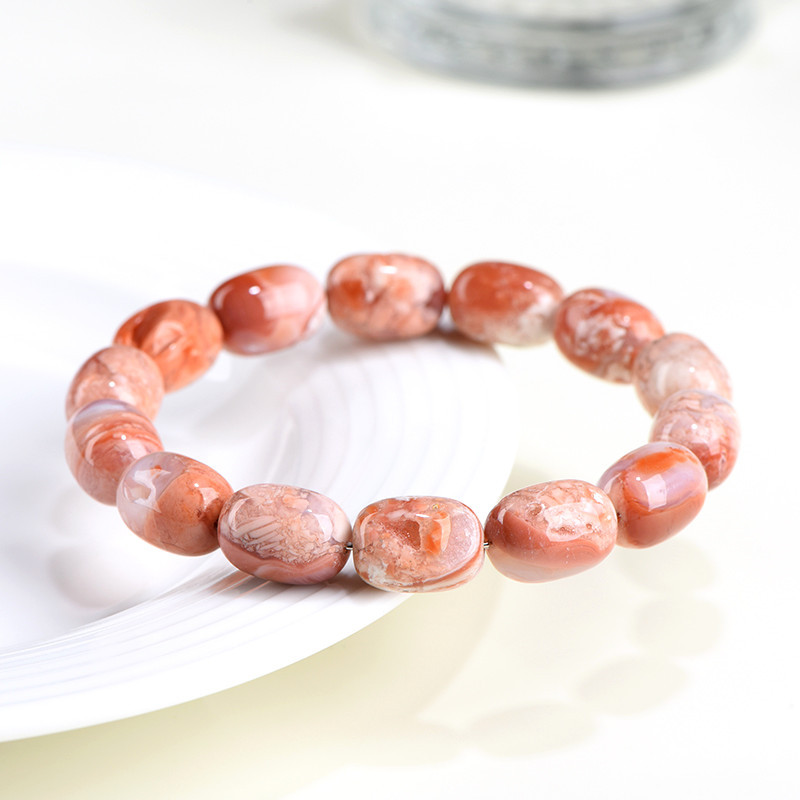 Natural Cherry Agate Barrel Shaped Bead Bracelet