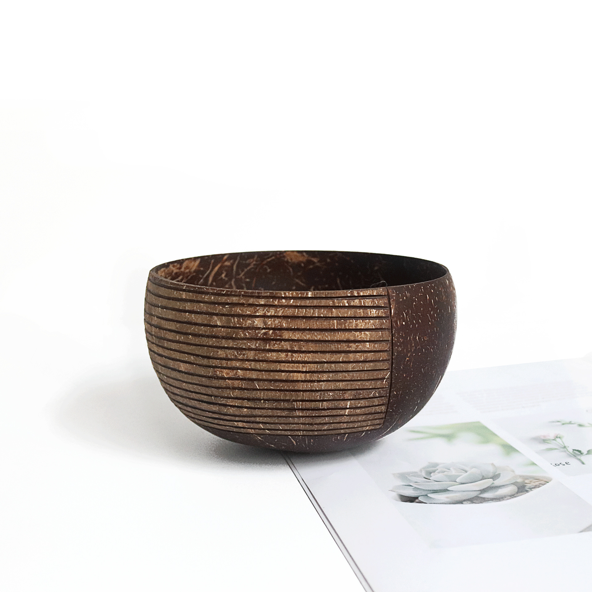 The coconut bowl is made of natural coconut shell. After carefully removing the coconut meat,