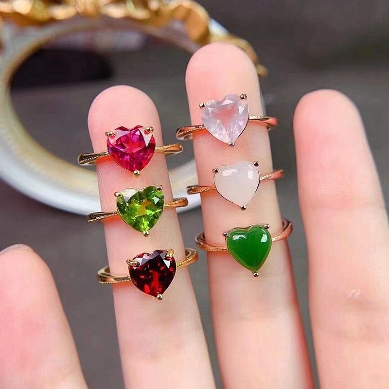 Natural Color Jewel Ring 925 Silver Inlaid