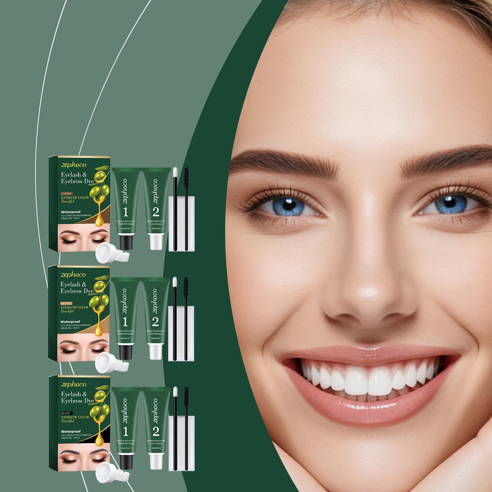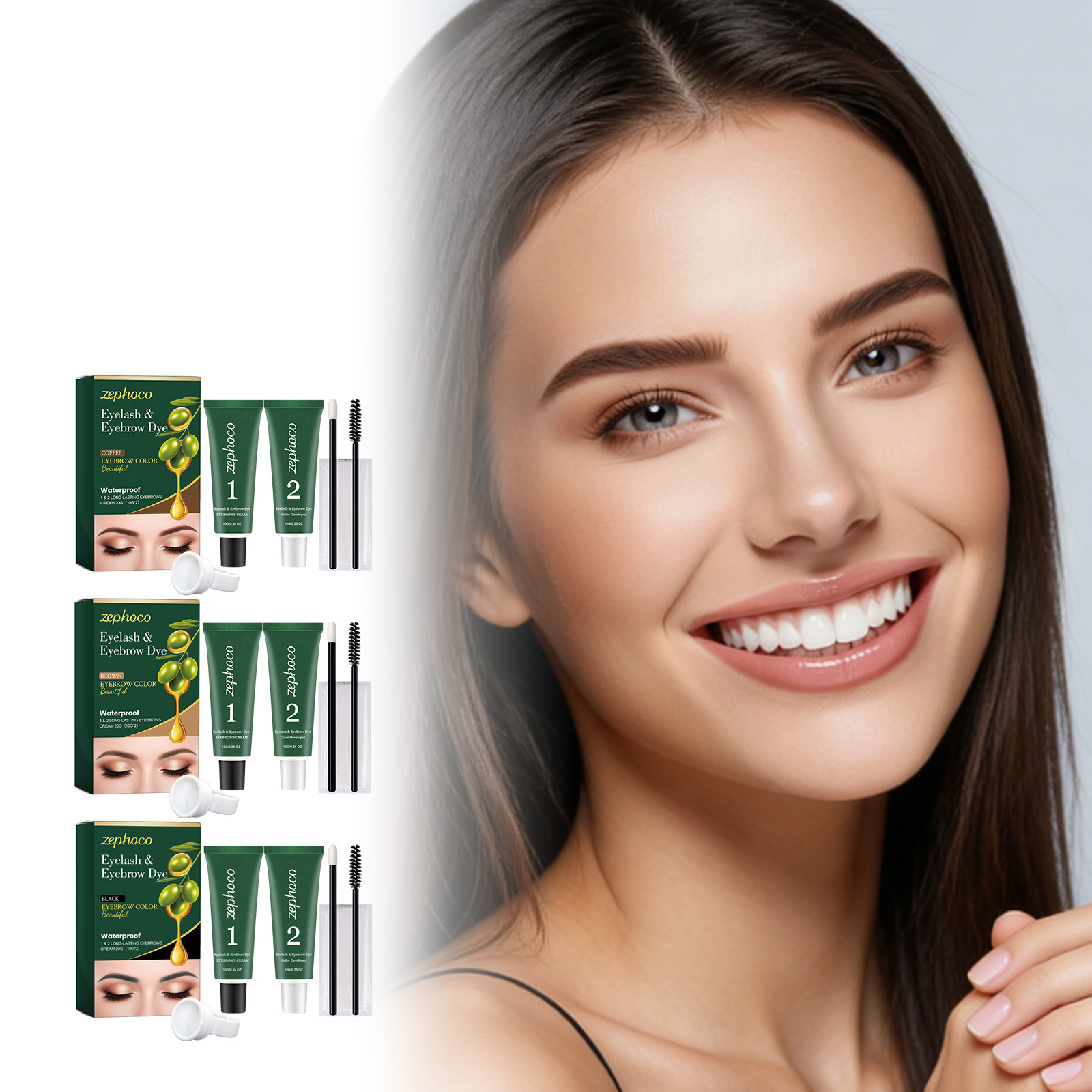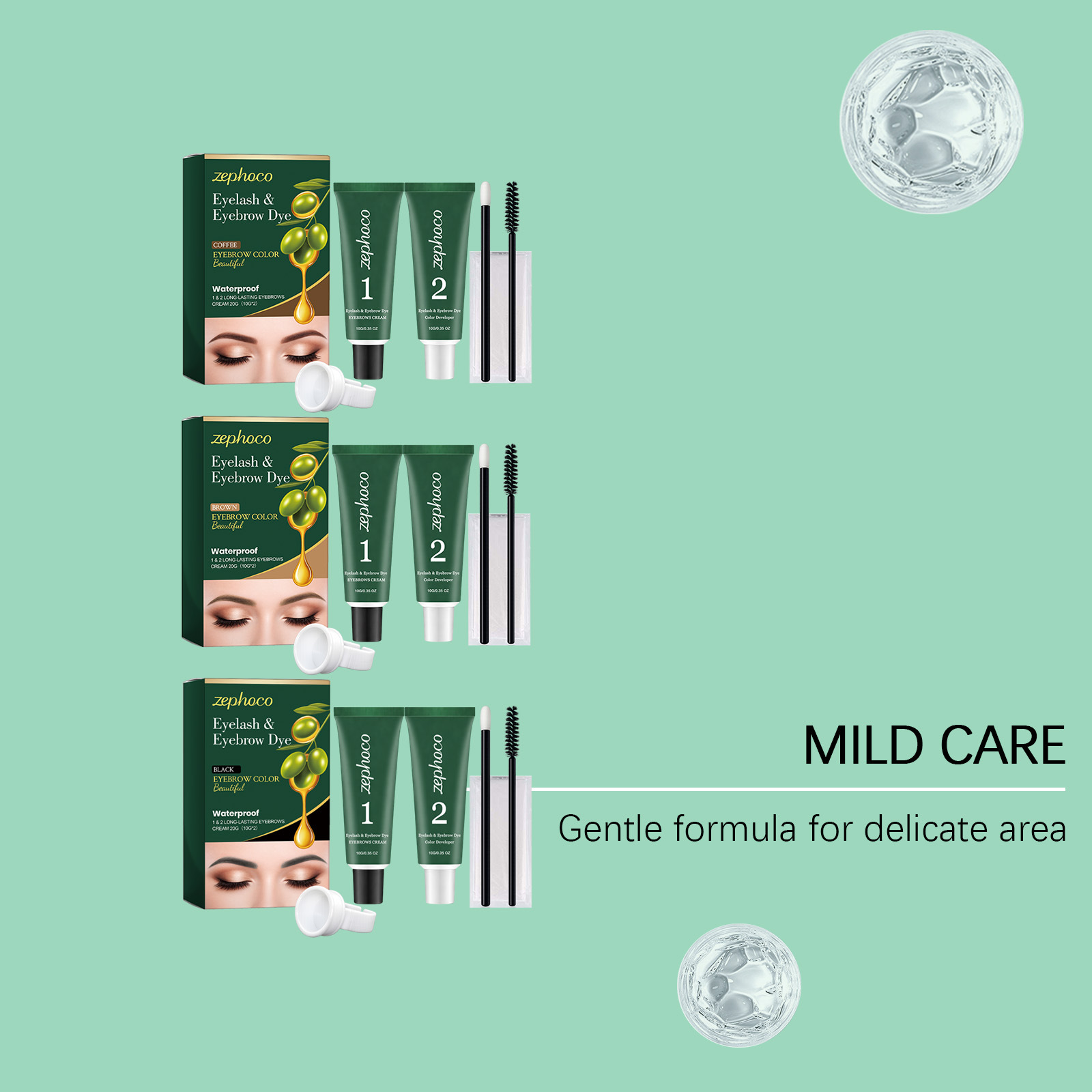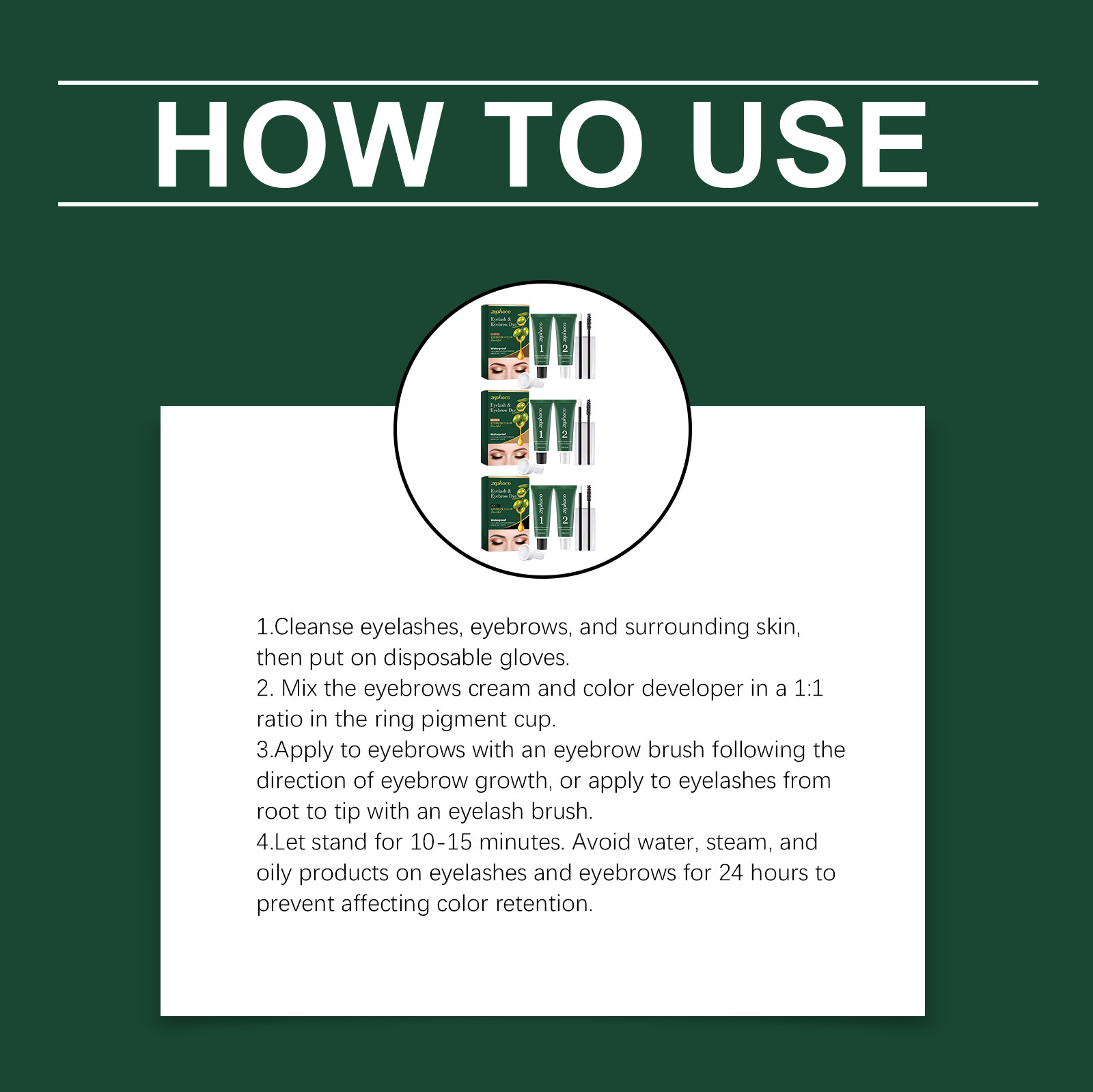 Net Content: Eyebrow Gel 10 g × 1, Developer Solution 10 g × 1, Eyebrow Brush × 1, Mascara Brush × 1, Pair of Disposable Gloves × 1, Ring-shaped Paint Cup × 1