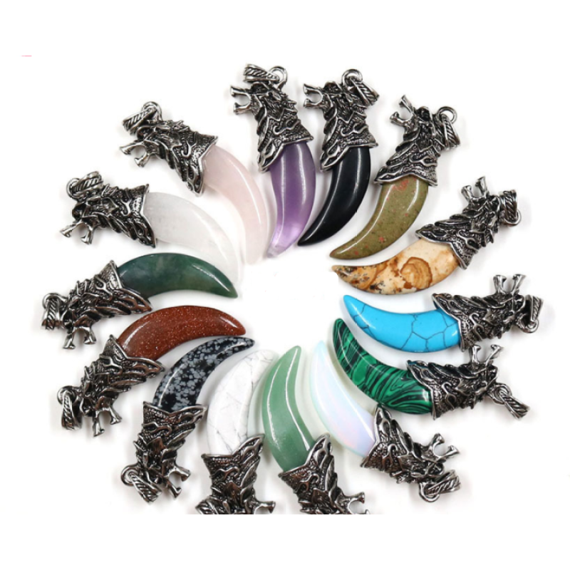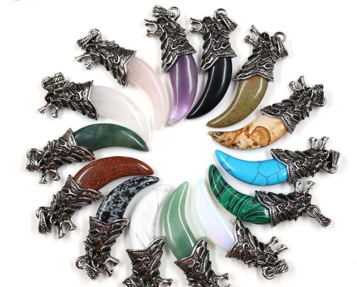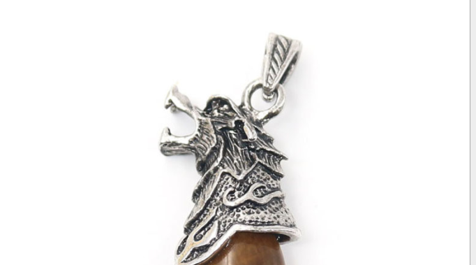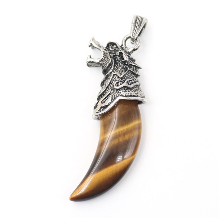 1*Tiger Eye Stone Men's Wolf Tooth Pendant
