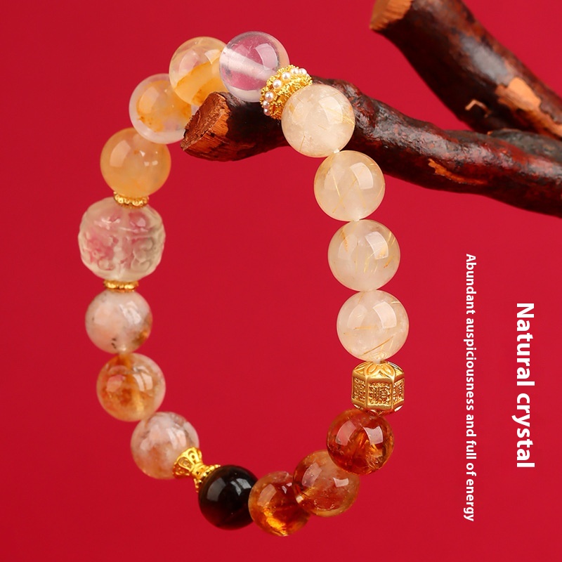 Color: Z1115 [Xi jin] Gold Ruby quartz flower blooming Regal bracelet, Z1116 [Xi Mu] green quartz Ruby coin like rain bracelet, Z1117 [Xishui] aquamarine square rich flower bracelet, z1118 [West fire] five-way gold wild strawberry quartz bracelet, z1119 [West picture] Yellow Taijing square rice bracelet